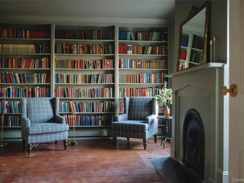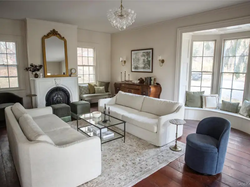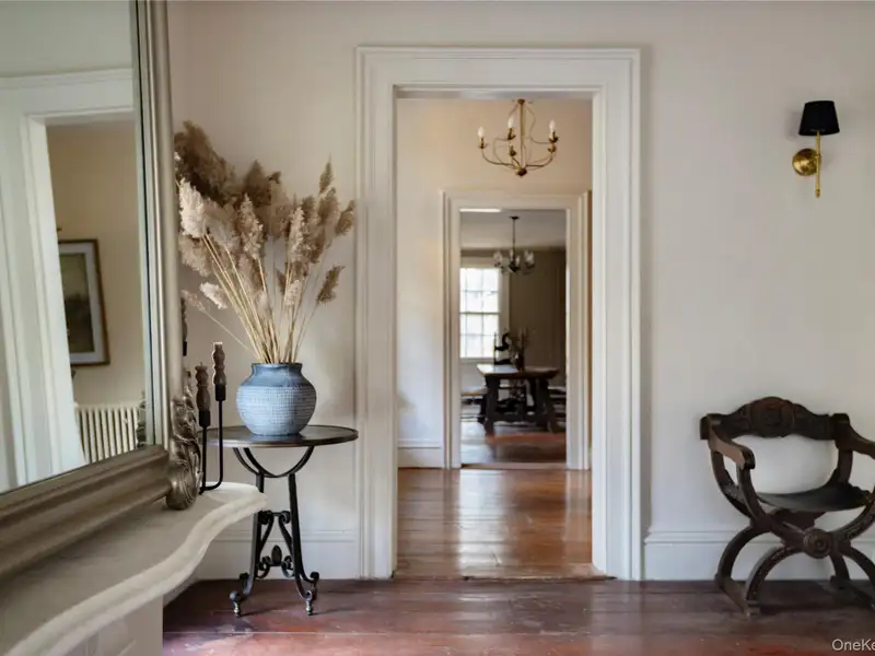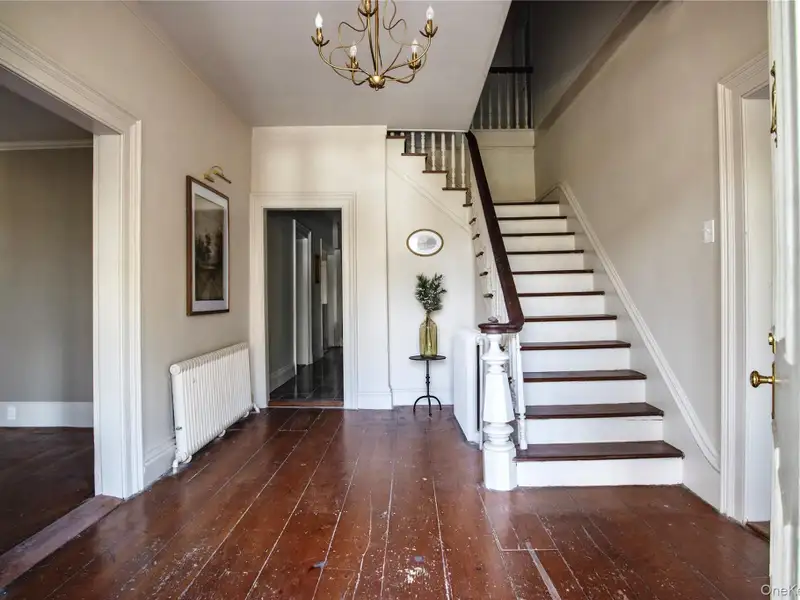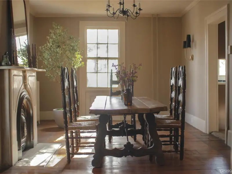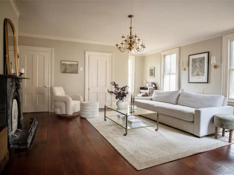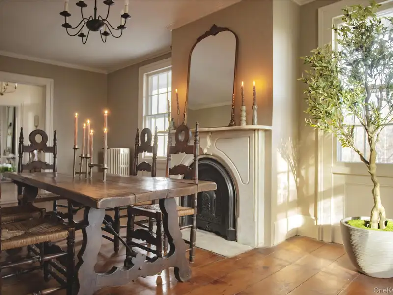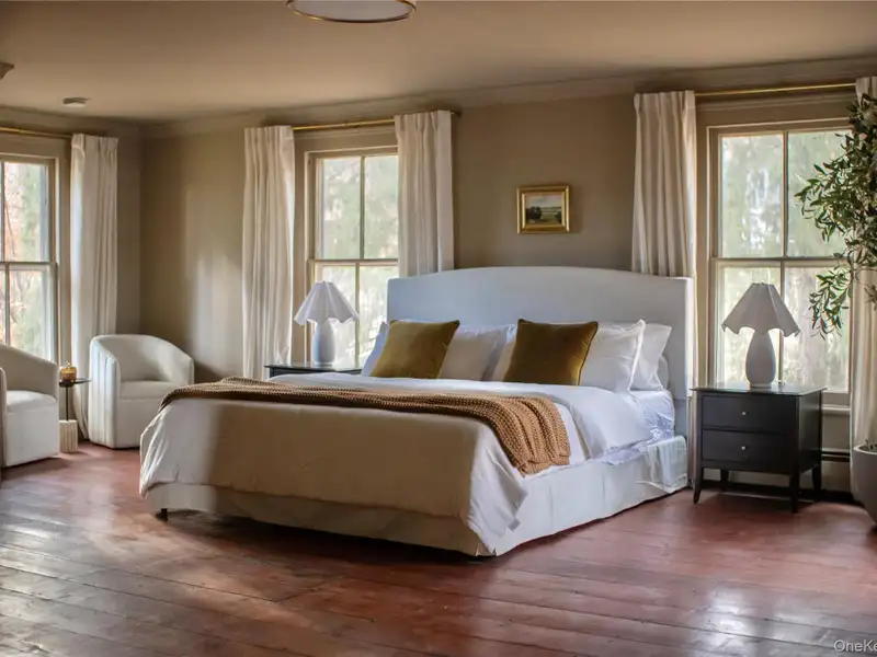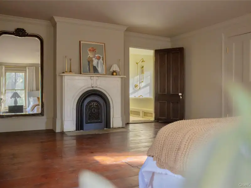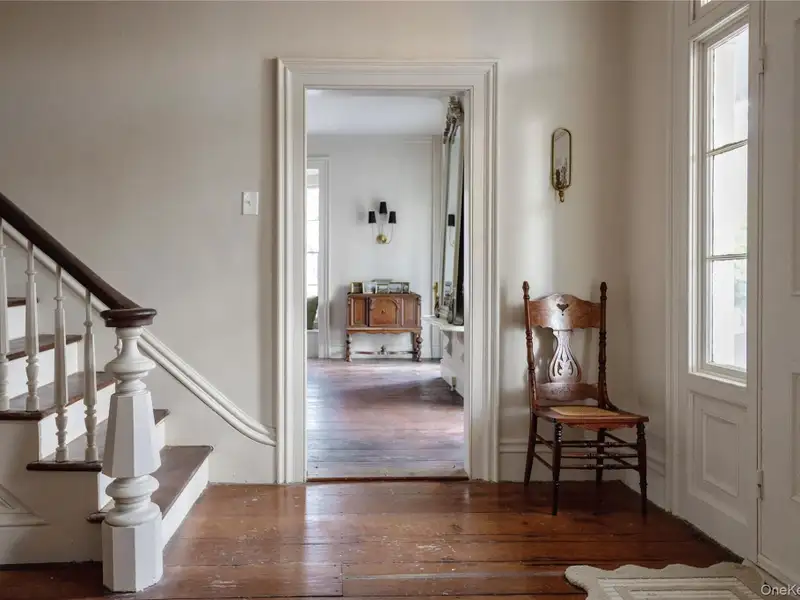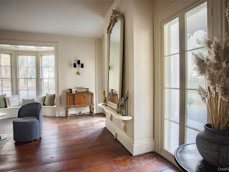 - Wide-plank floors with rich patina