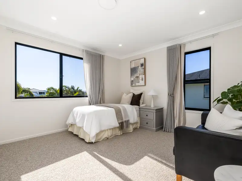 Additional features of this high calibre residence include a private office/fifth bedroom, fourth bathroom, separate laundry with storage, ducted air-conditioning, window sheers, solar electricity, triple remote garaging and options to install a private pontoon/jetty.