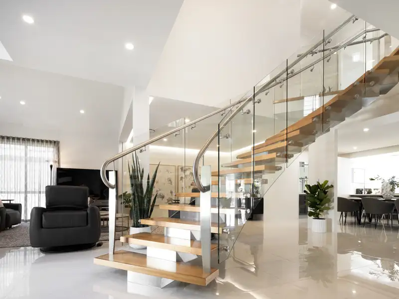 A sweeping glass-walled staircase takes centre stage in an expansive lower level, with a soaring void and gleaming tiles announcing your entry in style. Exceptionally sized, the living, dining, sitting and meals rooms offer incredible options to unwind whilst the palatial indoor/outdoor room captures the essence of coastal relaxation; natural timbers, stylish tiling and outdoor connection ideal for entertaining large groups.