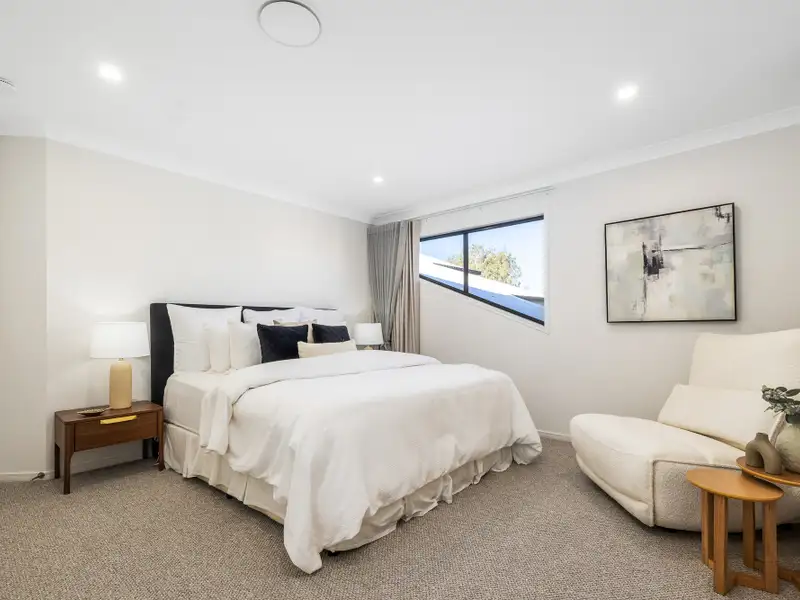 On the upper level, the private master opens to it's own waterside balcony, as well as enjoying a superbly sized walk-in robe and luxurious ensuite with freestanding bath, floor to ceiling tiling and dual vanity. The family bathroom nestled on this level is equally sophisticated whilst one of the supporting bedrooms benefit from a high quality ensuite.