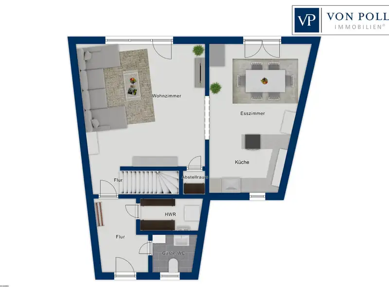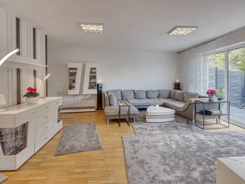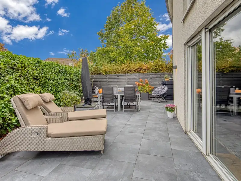 The outdoor area impresses with an easy-care, sunny terrace, which offers plenty of space for seating areas and leisure activities - without requiring much maintenance. A utility room on the first floor offers additional practical usable space.