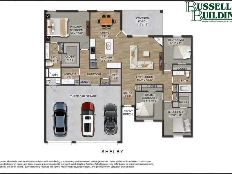 - Three-car garage with ample storage
