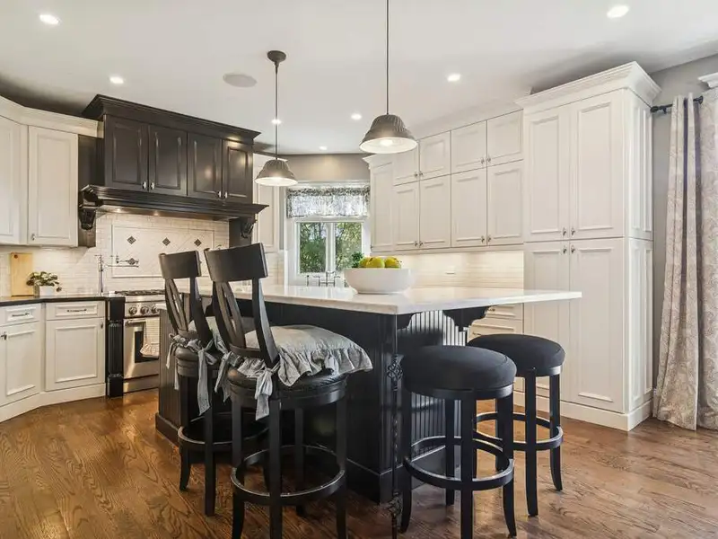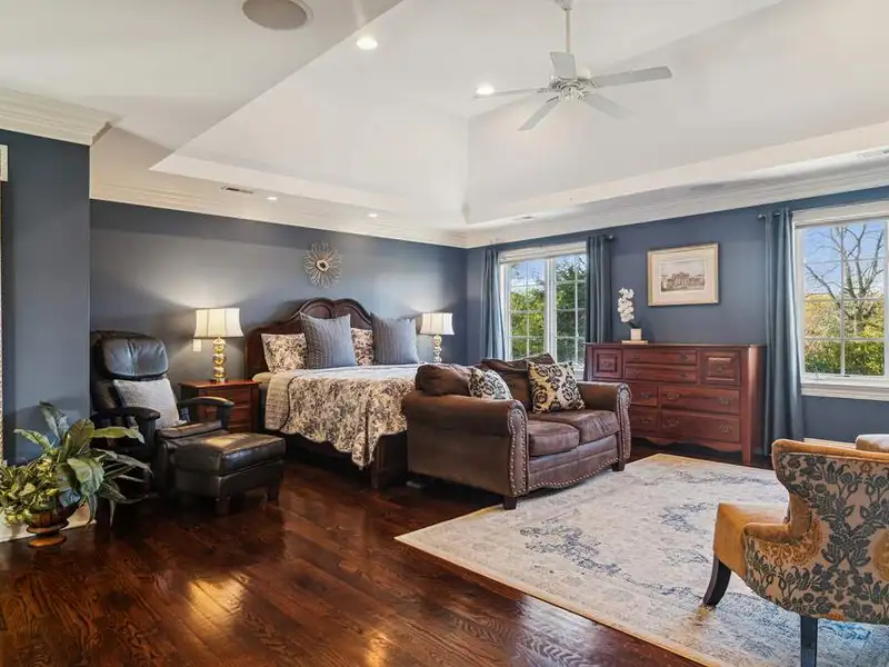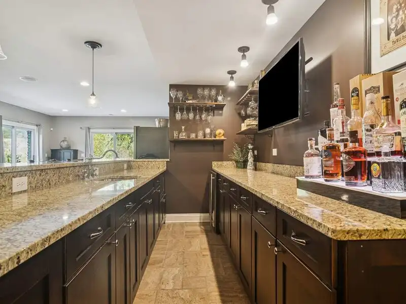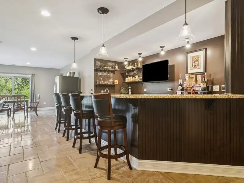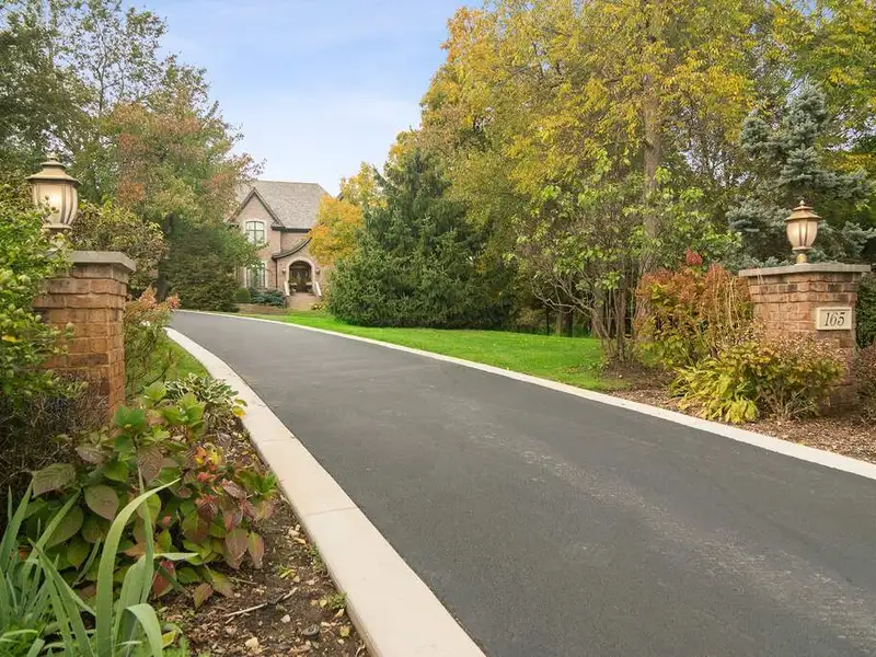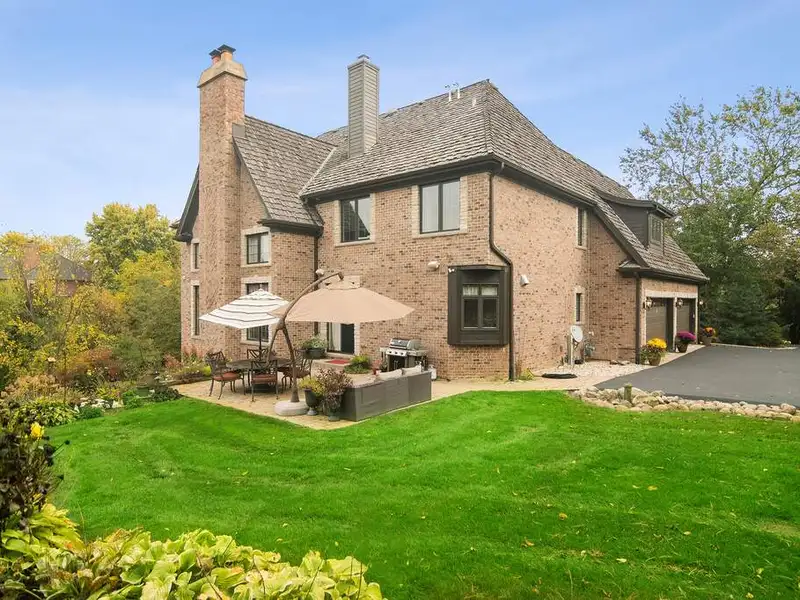 Experience timeless sophistication and contemporary convenience in this stunning 6,577-square-foot residence on 1.29 acres, ideally located in the serene North Barrington community, Haverton on the Pond. Meticulously maintained, this fully brick home offers five bedrooms, four full bathrooms, and two half-bathrooms, seamlessly blending refined design with everyday functionality. Step inside the grand foyer, where a grand staircase with wrought iron spindles, soaring two-story ceilings, and stunning dark hardwood throughout the main and second levels set the tone for the home's elegance. The gourmet kitchen impresses with a large marble island and slick black granite countertops, custom soft-close cabinetry, reverse osmosis water filtration, and high-end appliances including a Sub-Zero refrigerator and Thermador Professional gas range with 6 burners and a griddle-perfect for the passionate home chef. Around the corner, the butler's pantry features matching cabinetry and countertops to the kitchen, a wet bar, and beverage fridge. The eat-in kitchen and breakfast room with access to the patio seamlessly combine into the expansive two-story living room, centered around a stone gas fireplace, creating an inviting space for both relaxation and entertaining. The dining room and living room showcase stunning crown moldings and wainscoting, and the library/office features french doors, built-in bookshelves, wainscoting and coffered ceilings. Convenience abounds with a main-level laundry/mudroom-doubling as a half bath-equipped with Whirlpool washer/dryer, stone counters and floors, custom cabinetry, sink, built-in cubbies, and direct garage access. The primary suite offers a private sanctuary, featuring a gas fireplace with a granite hearth and built-ins, wet bar with travertine countertops, a luxurious spa bathroom with a jetted Whirlpool tub, large steam shower, heated stone floors, separate vanities with custom cabinetry and travertine countertops, and enormous walk-in closet with an adjacent private workout room for ultimate convenience. Upstairs, three additional bedrooms with vaulted ceilings and walk-in closets include one ensuite with limestone vanity and shower/tub combo, plus two sharing a thoughtfully designed Jack-and-Jill bath with marble countertops, shower/tub, and a separate toilet room behind a pocket door; one of these bedrooms also enjoys a charming third-story loft with hardwood floors. The fifth bedroom is located in the fully finished walkout basement. The walkout basement also features a full bathroom, stylish full bar with granite countertops, a wine cooler, microwave, and heated stone floors, a living area with a gas fireplace, wine cellar, and a dedicated media/theatre room. The four-car garage, professionally epoxy sealed and gas heated, offers ample space for vehicles and storage. Outdoors, the beautiful professionally landscaped yard features irrigation and landscape lighting systems, and a brand-new asphalt driveway with concrete ribbon enhancing the overall curb appeal. Enjoy breathtaking sunset views over the pond from the two brick paver patios connecting the main and lower levels with gorgeous brick and stone steps. Additional exterior features include a gas grill hookup, invisible fence, spring-free trampoline, and she-shed-all included in the sale. Located just 35 miles from Chicago, minutes from shopping, dining, and everyday conveniences, less than a 10-minute drive to Downtown Barrington and the Metra station, and in the highly awarded Barrington School District 220, 165 Haverton Way offers an extraordinary combination of luxury and practicality. Schedule your private tour today-this North Barrington masterpiece won't last long.