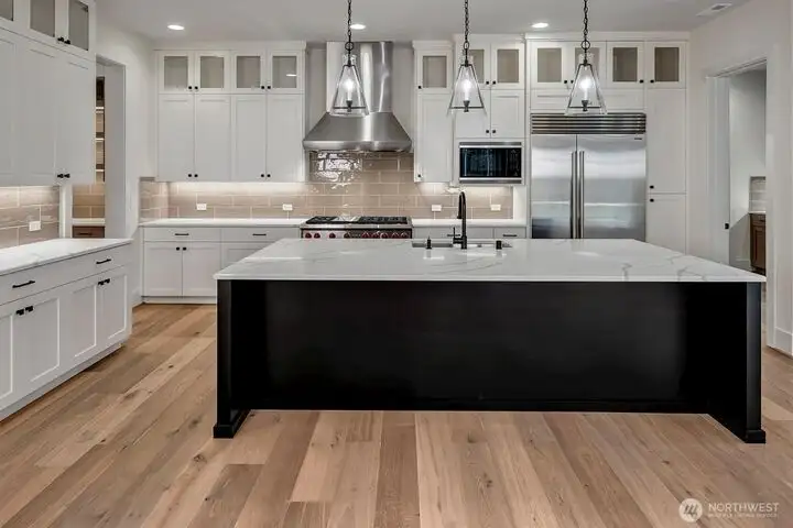- Quartz countertops in kitchen