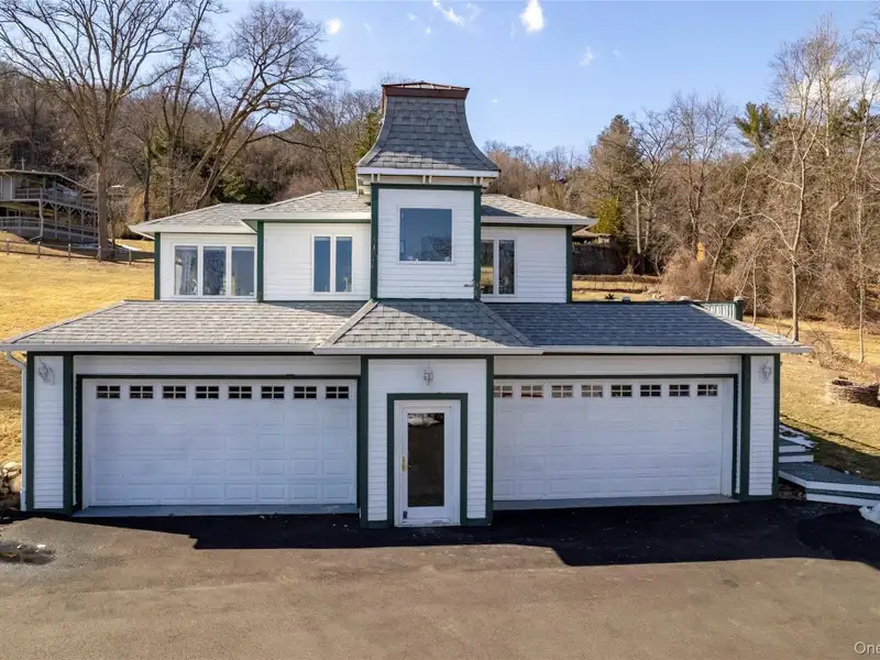 - Heated four-car garage with guest suite