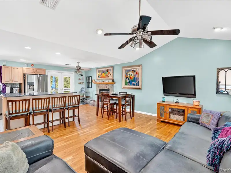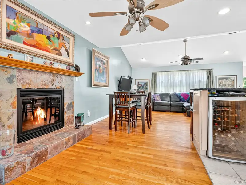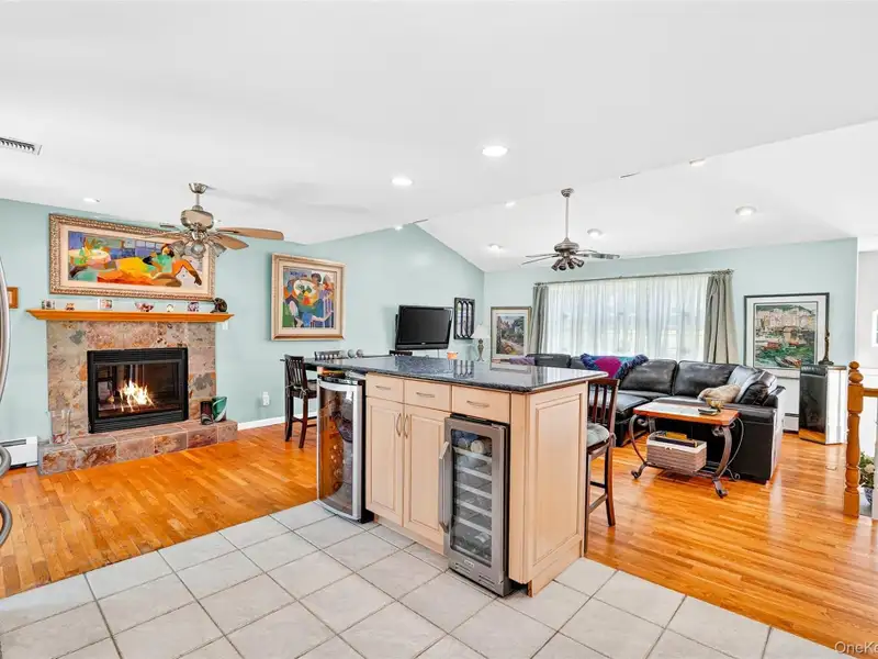This isn't the typical bi-level that you have come to know. There is a large entry foyer with ample closets for everyone. Moving up the stairs to the open-concept living, dining, and kitchen area brings you to a bright and inviting space, ideal for everyday living and entertaining. And it features a gas fireplace for ambiance. The large chef's kitchen has a bar, 2 wine fridges, and every lower cabinet has pull-out drawers for easy access.