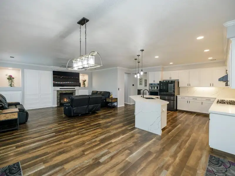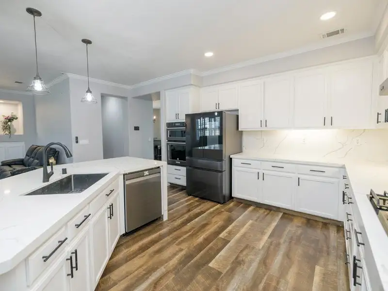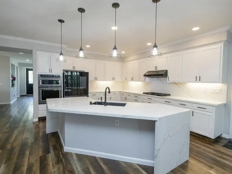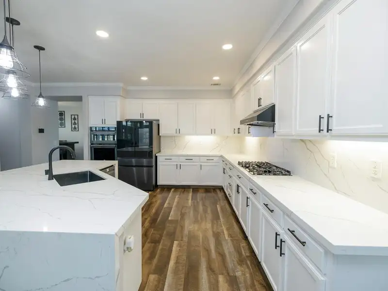 - Quartz kitchen counters and large center island