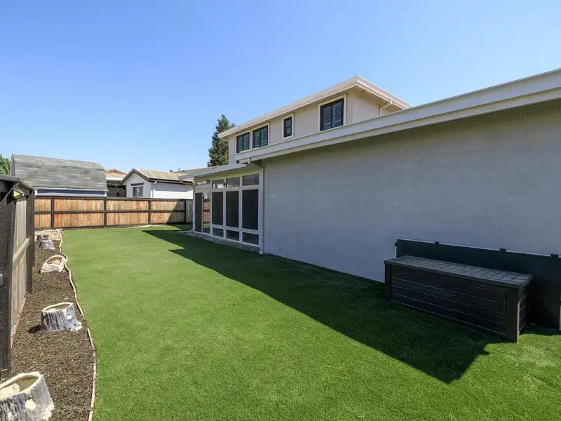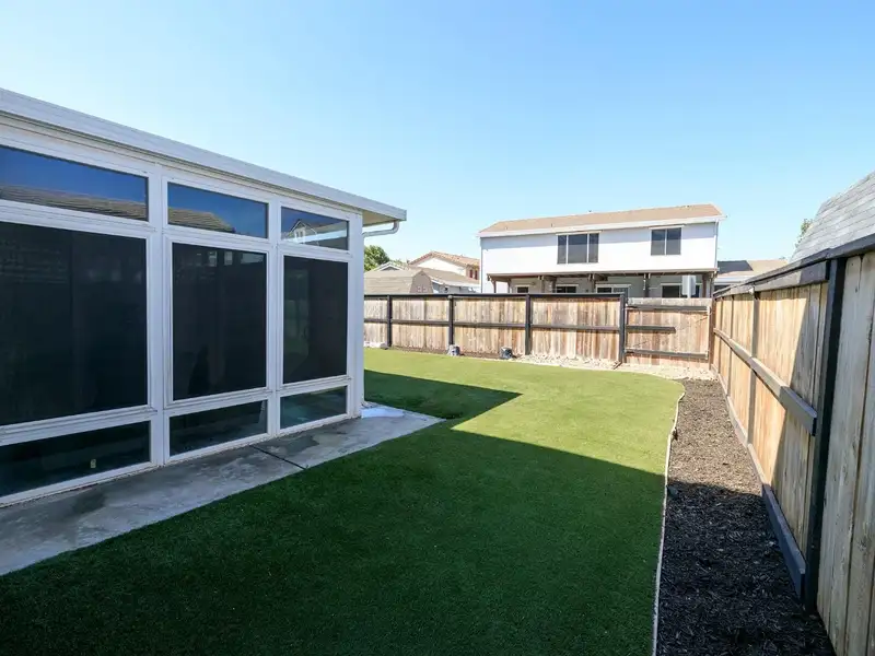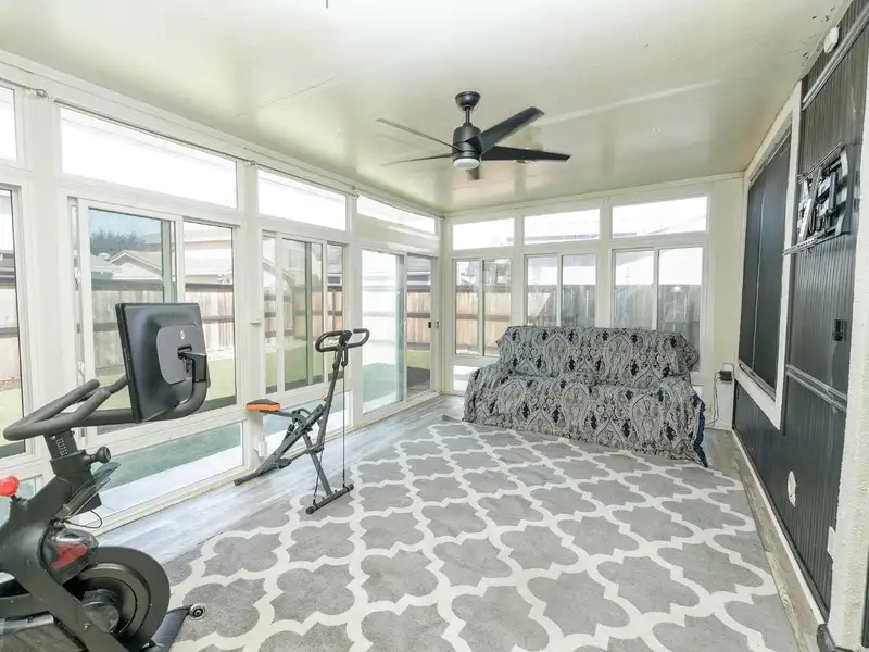 - Bright sunroom overlooking low-maintenance yard