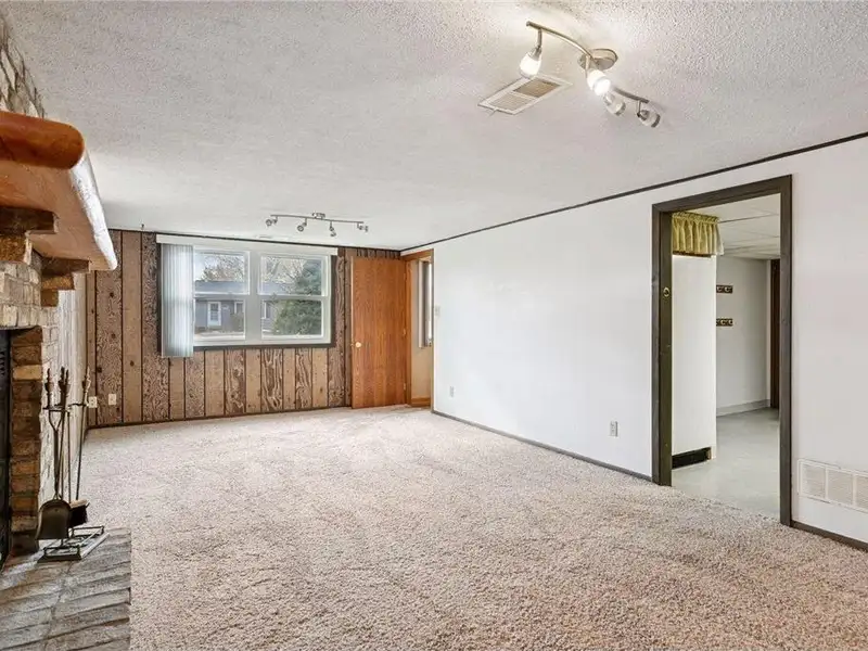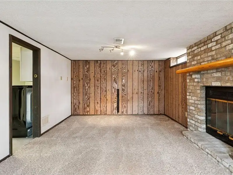 - Wood-burning fireplace in family room