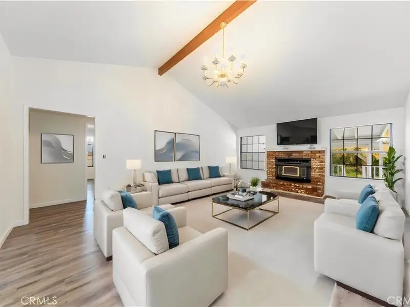 - Vaulted ceiling with country chandelier