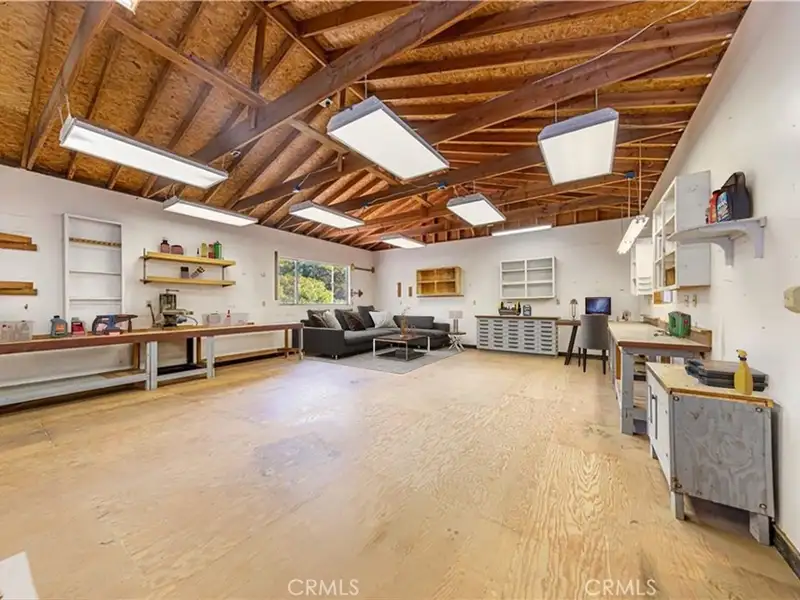 - Extra-large 2-car garage with workbenches