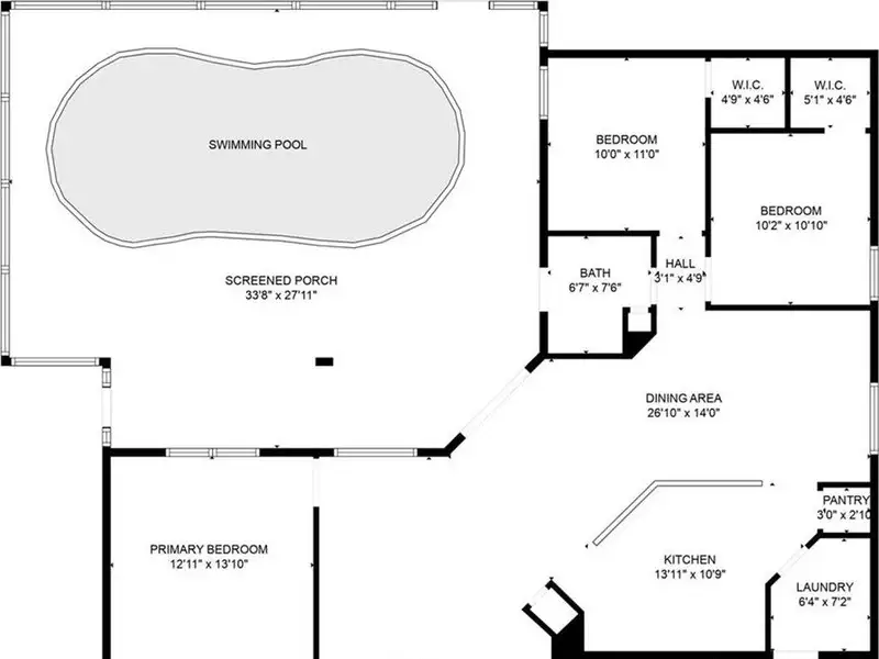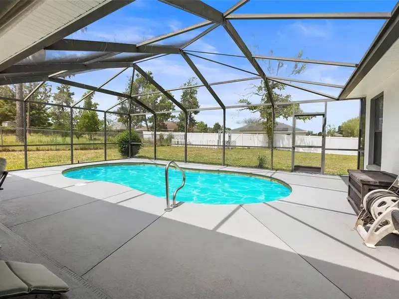 - In-ground pool with enclosure