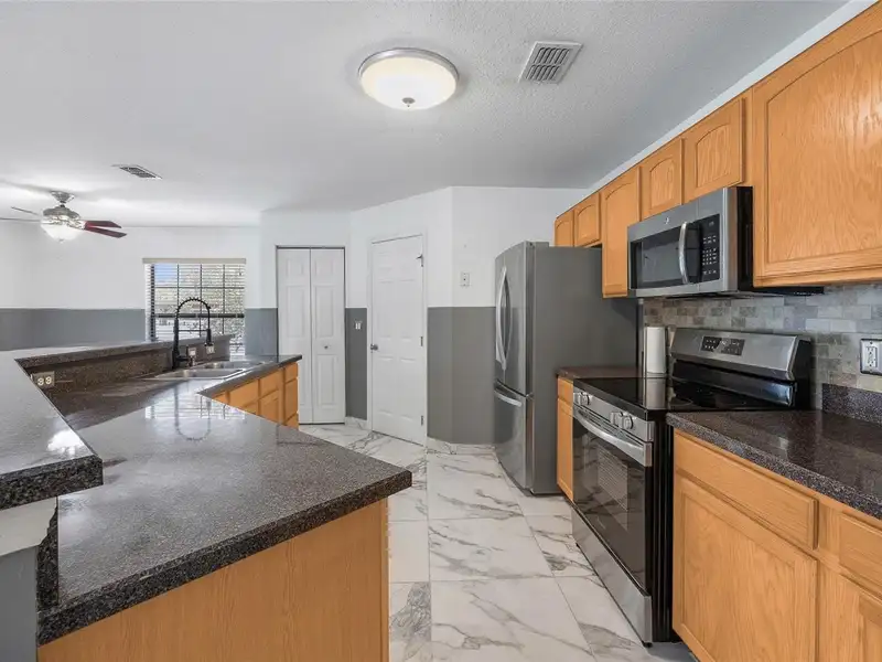 - Kitchen with stainless steel appliances