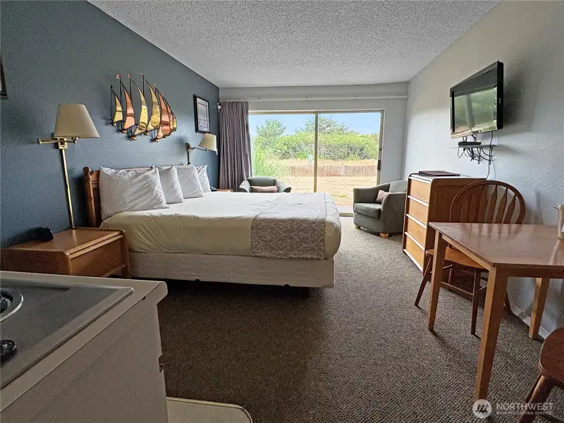 - Ground-floor studio with back patio access