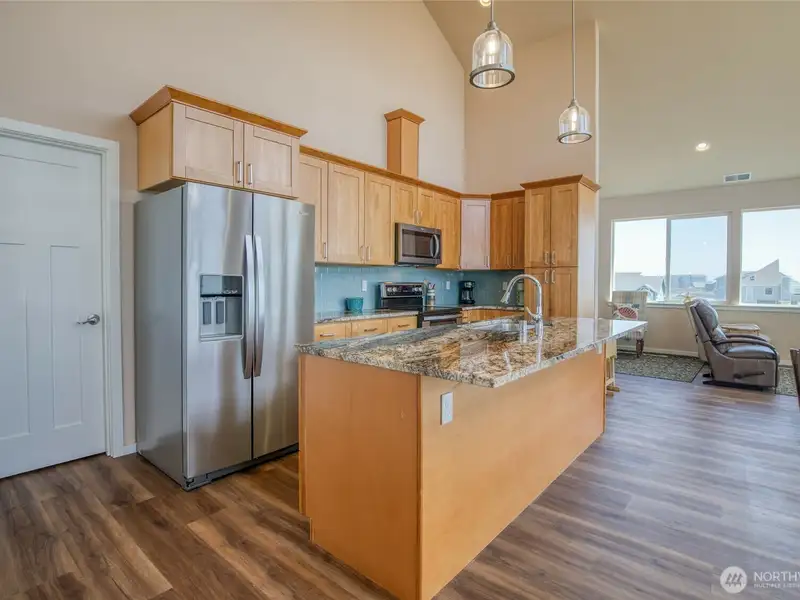 - Granite countertops in kitchen