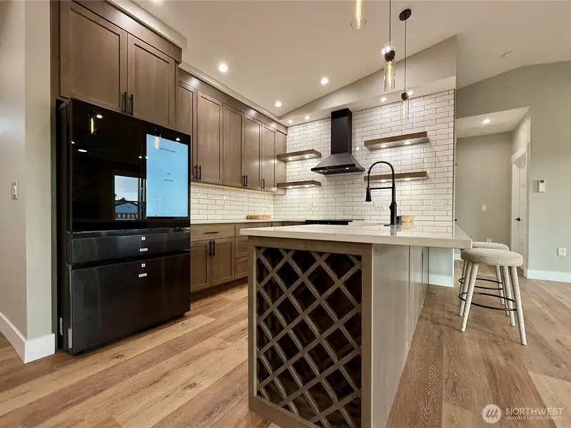 - Kitchen with quartz counters and pantry