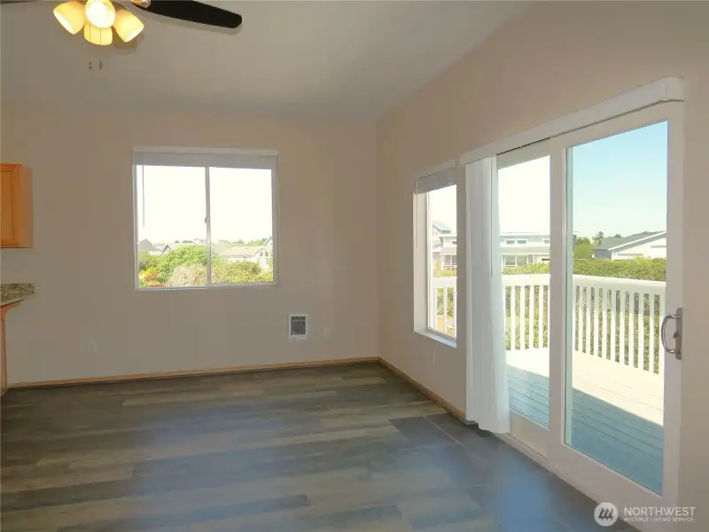 - Open concept living with attached deck