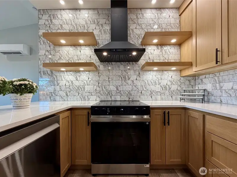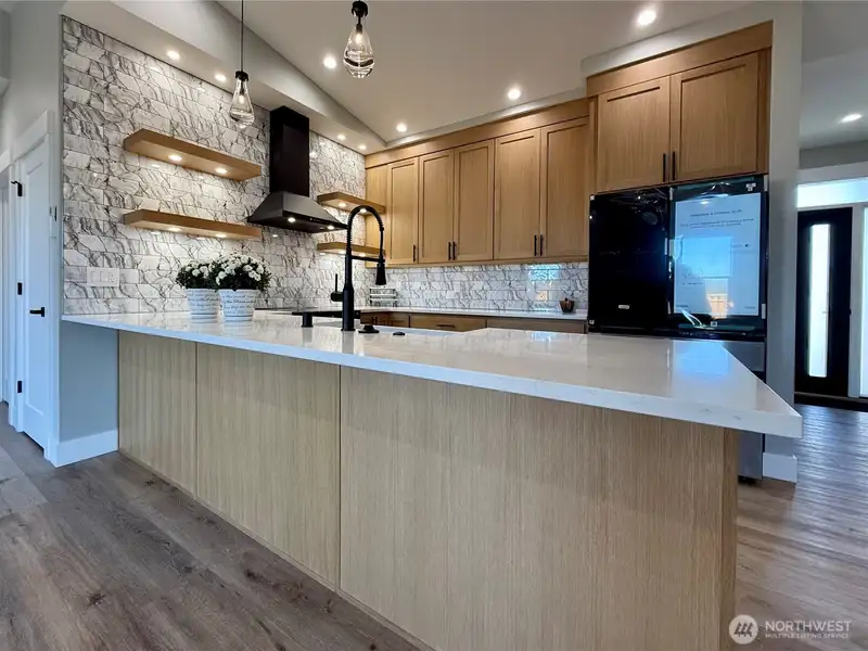 - Kitchen with quartz counters and pantry