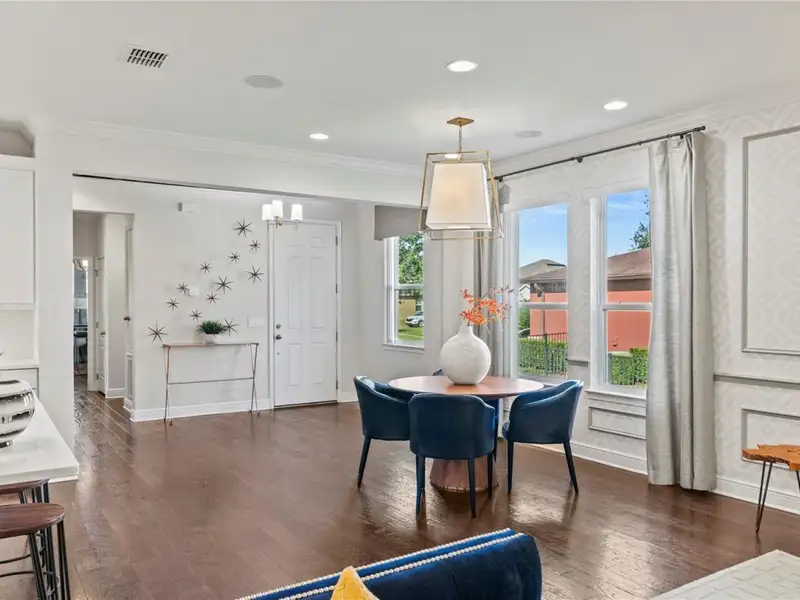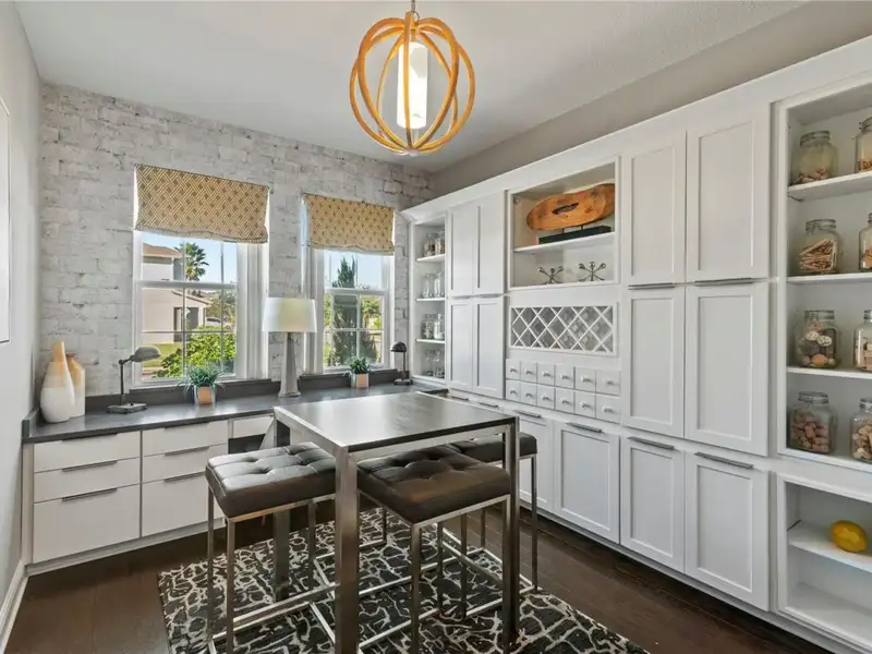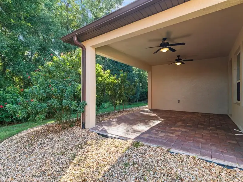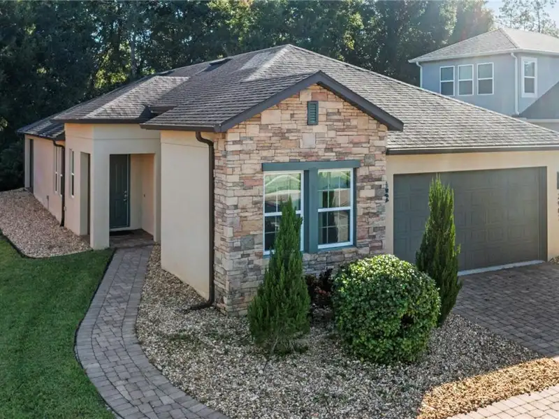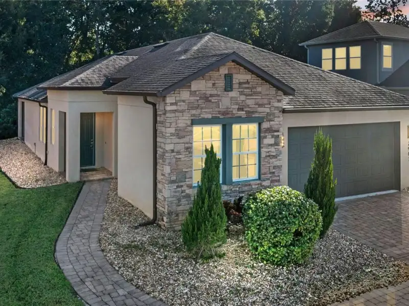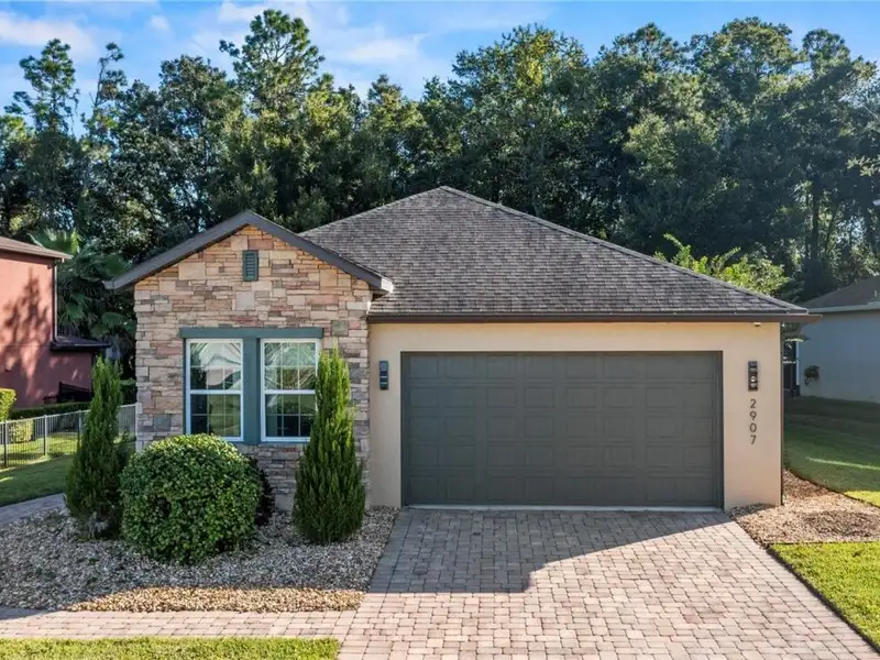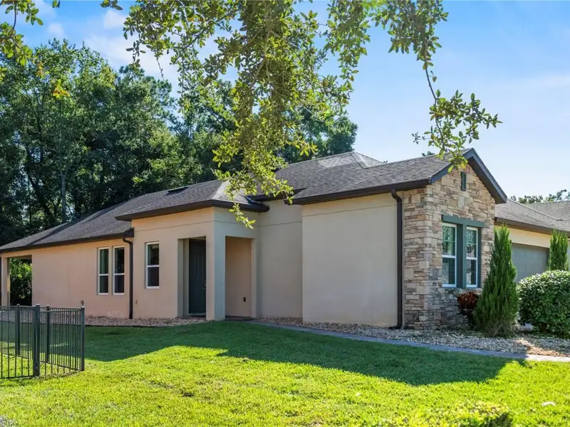 Move right into this former model home from Cal Atlantic Homes in Ocoee's gated Arden Park North community. This 'Largo floor plan features 3 beds, 2 baths, family room, dining room, upgraded kitchen, 2 car garage, a large covered patio that backs up to trees - NO REAR NEIGHBORS! You will love the 8' front door and stone front elevation, tall ceilings, neutral paint palate, crown molding, wood and ceramic tile floors throughout - no carpet - and the open floor plan! The foyer with coffered ceilings will welcome you into the home with the dining room in front of you. The spacious and upgraded kitchen features 42 cabinets with crown molding and hardware, subway tile backsplash, quartz counters with a farmhouse style stainless steel sink, stainless steel appliances with a gas range, breakfast bar, plenty of counter space and a walk-in pantry with a glass French door. The kitchen is open to the large family room, with a French door leading to the brick paver and covered patio that is pre-plumbed for a summer kitchen and backs up to a wooded view for privacy - what a great space to enjoy your morning coffee or relax after a long day! The owner's suite is in the back of the home, overlooks the wooded backyard and features a tray ceiling with crown molding and wood panels, and an en-suite bath with a double sink 'adult height vanity with two vessel sinks, a glass enclosed, walk in tiled shower with a bench, a walk-in closet with built-ins and a separate water closet. The guest bedrooms are in the front of the home for privacy. One has a built-in desk and wall-unit built into the wall. The guest bathroom has a one sink 'adult height vanity and a tiled tub/shower combo with a large decorative listello design on the wall. The laundry room is off the kitchen and has 42 cabinets for storage, a new washer and built in sink with cabinet underneath. The two car garage floor is epoxied. Additional updates to this home include a water filtration system, a transferrable termite bond, surround sound throughout the home and a built-in security system with cameras and a monitor. Home can be sold with the existing furniture and décor, if the Buyer chooses. Community is gated and features a pool, playground, fitness center and a walking trail around Lake Sims. Centrally located, minutes away from the West Orange Trail, easy access to the 429, downtown Winter Garden, shopping, dining and major highways. Make this beautiful home yours today!