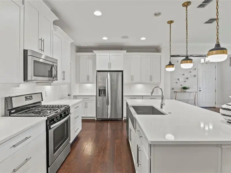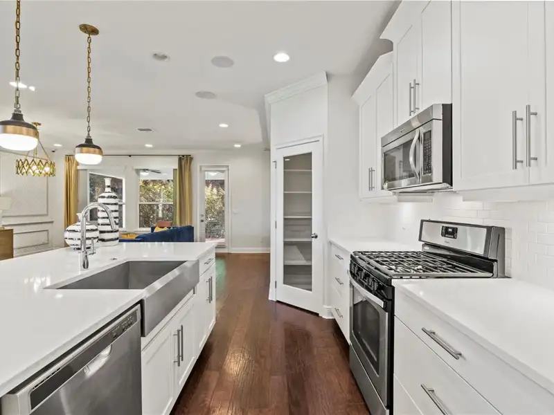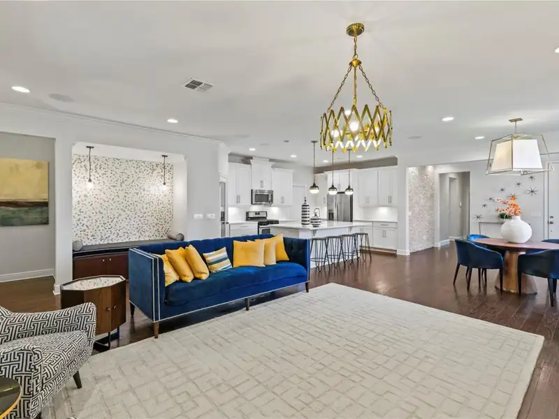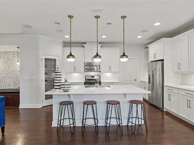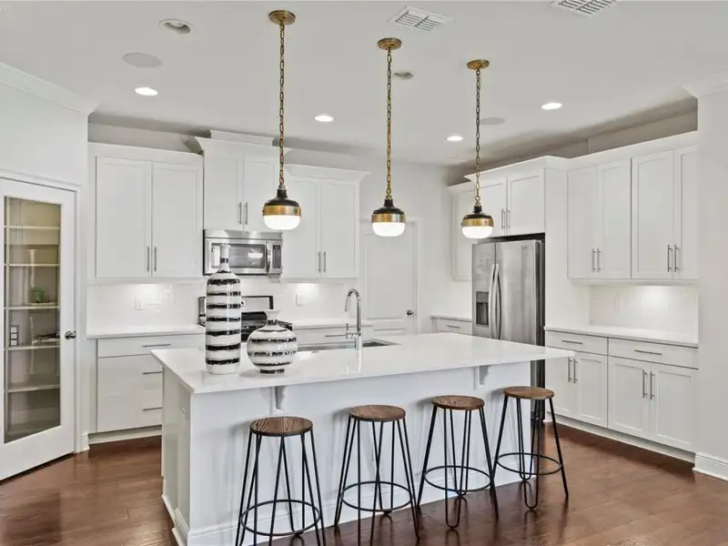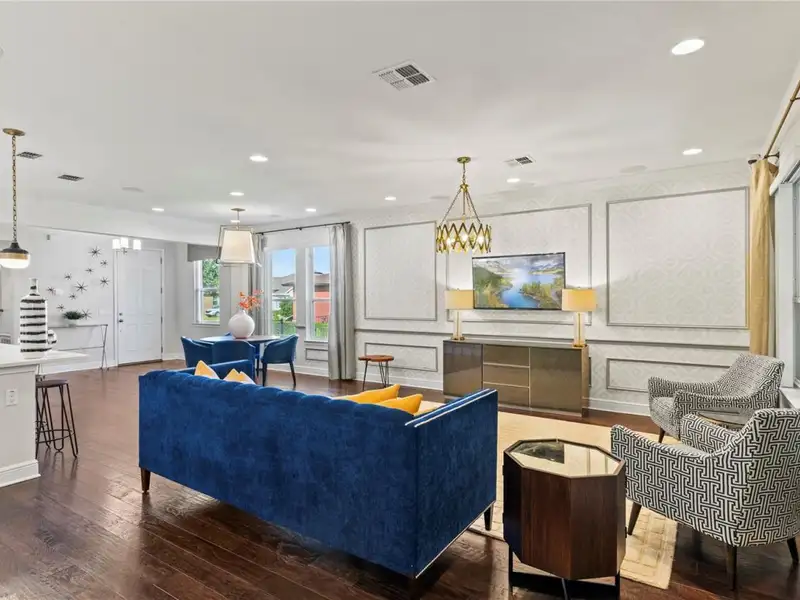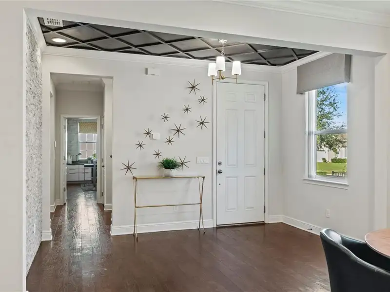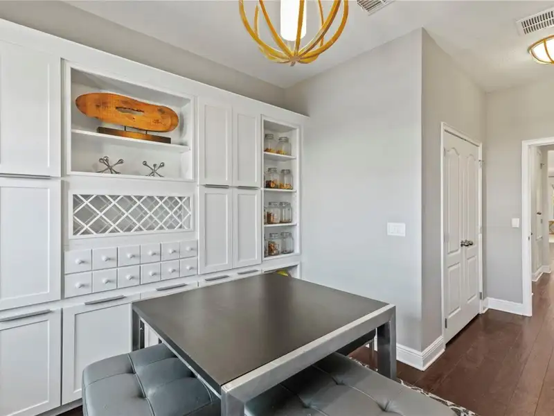 Move right into this former model home from Cal Atlantic Homes in Ocoee's gated Arden Park North community. This 'Largo floor plan features 3 beds, 2 baths, family room, dining room, upgraded kitchen, 2 car garage, a large covered patio that backs up to trees - NO REAR NEIGHBORS! You will love the 8' front door and stone front elevation, tall ceilings, neutral paint palate, crown molding, wood and ceramic tile floors throughout - no carpet - and the open floor plan! The foyer with coffered ceilings will welcome you into the home with the dining room in front of you. The spacious and upgraded kitchen features 42 cabinets with crown molding and hardware, subway tile backsplash, quartz counters with a farmhouse style stainless steel sink, stainless steel appliances with a gas range, breakfast bar, plenty of counter space and a walk-in pantry with a glass French door. The kitchen is open to the large family room, with a French door leading to the brick paver and covered patio that is pre-plumbed for a summer kitchen and backs up to a wooded view for privacy - what a great space to enjoy your morning coffee or relax after a long day! The owner's suite is in the back of the home, overlooks the wooded backyard and features a tray ceiling with crown molding and wood panels, and an en-suite bath with a double sink 'adult height vanity with two vessel sinks, a glass enclosed, walk in tiled shower with a bench, a walk-in closet with built-ins and a separate water closet. The guest bedrooms are in the front of the home for privacy. One has a built-in desk and wall-unit built into the wall. The guest bathroom has a one sink 'adult height vanity and a tiled tub/shower combo with a large decorative listello design on the wall. The laundry room is off the kitchen and has 42 cabinets for storage, a new washer and built in sink with cabinet underneath. The two car garage floor is epoxied. Additional updates to this home include a water filtration system, a transferrable termite bond, surround sound throughout the home and a built-in security system with cameras and a monitor. Home can be sold with the existing furniture and décor, if the Buyer chooses. Community is gated and features a pool, playground, fitness center and a walking trail around Lake Sims. Centrally located, minutes away from the West Orange Trail, easy access to the 429, downtown Winter Garden, shopping, dining and major highways. Make this beautiful home yours today!
