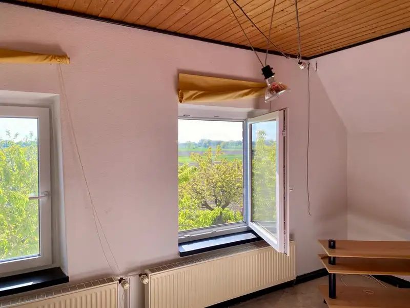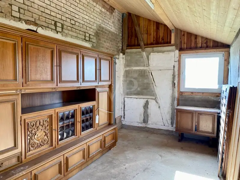 For sale is a charming remaining farmhouse on a generous plot of almost 1 hectare. The living space of the house is approx. 250 m² and comprises a total of seven rooms, which offer a wide range of possible uses. Built in 1905, the house is in a condition that requires some renovation work, but at the same time offers the potential for new design possibilities. The floor plan of the house is functional and spacious and suitable for a large family, two families or living and working under one roof. There are several rooms on the first floor that offer plenty of space to realize individual living ideas. The kitchen is spacious and allows for the installation of a modern eat-in kitchen. There is also the option of creating a granny apartment on the first floor via a side entrance, while on the upper floor, whose windows were modernized in 2024, there are further rooms that are ideal for use as bedrooms or offices. A new bathroom with bathtub was also installed here. A renovation of the house ensures better energy efficiency and also brings a contemporary character to the house in terms of style. The windows on the first floor were already replaced in 1982, and here, too, one would have to think about a renewal. The current heating is provided by an oil-fired central heating system from 1991, which should be replaced in due course. The hot water is provided by a solar thermal system. The simple furnishing quality of the house offers future owners the opportunity to design the rooms according to their own ideas and thus further increase the living comfort.the extensive plot offers numerous options for use, whether as a spacious garden, grazing area for animals or as a play area - the design possibilities are almost unlimited and allow individual wishes and ideas to be fulfilled. Additional potential is offered by the existing outbuildings, which can be used in a variety of ways, whether for keeping animals, as a workshop or for other personal projects. The entire ensemble of this property gives future owners plenty of scope to renovate, modernize and adapt to modern living requirements. This offer is aimed at buyers who appreciate the potential of an older house and are willing to develop it further according to their own ideas. A viewing offers the opportunity to gain a detailed impression of the property and its extensive grounds. Interested parties are cordially invited to experience the potential and diversity of this property.