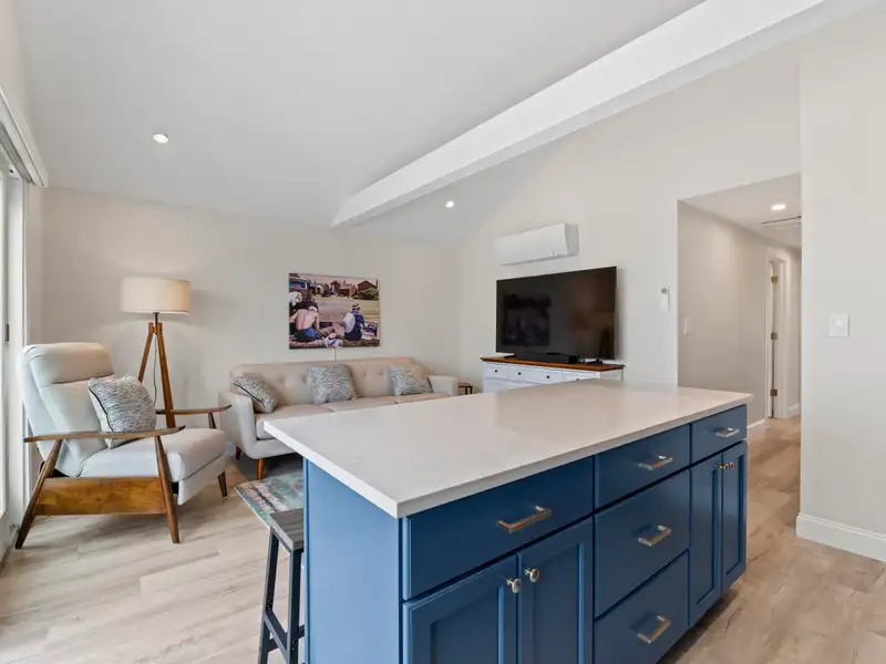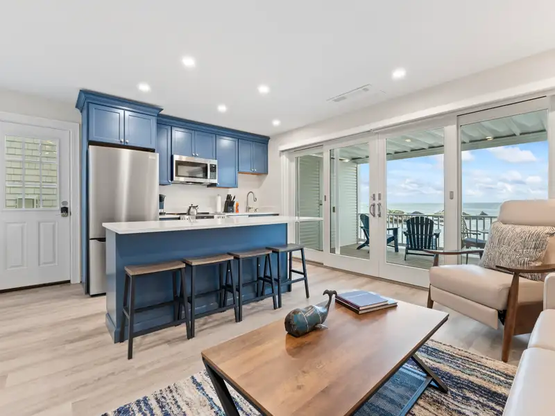 Both units boast two bedrooms and one bathroom with stunning 200+ sf decks with bold ocean panoramas that stretch to the horizon. Both units include in-unit laundry facilities and showcase quality construction throughout. The custom kitchens enjoy crisp, clean lines with Quartz countertops and upbeat blue custom cabinetry.