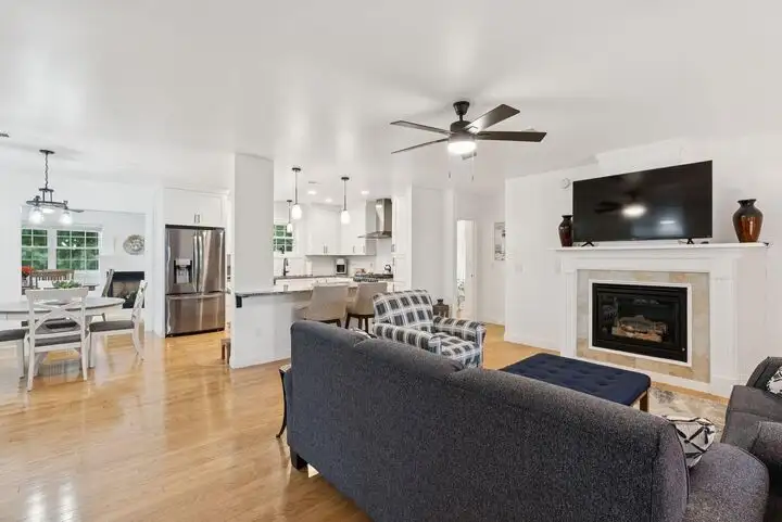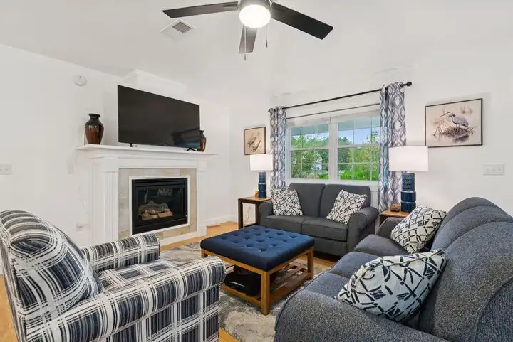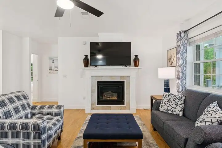 - Gas fireplace with updated flooring