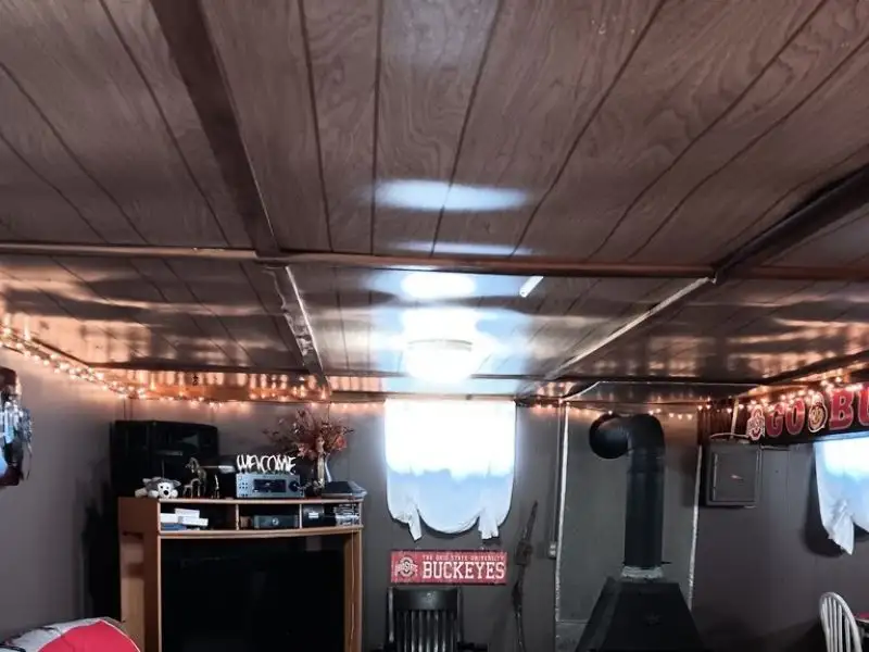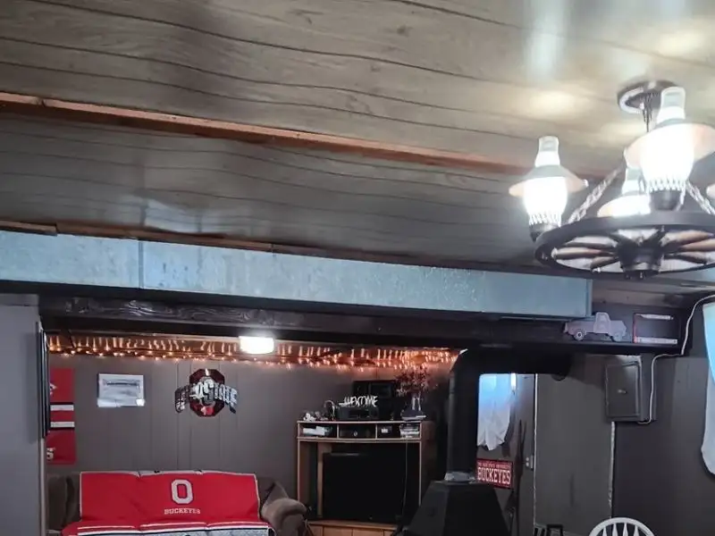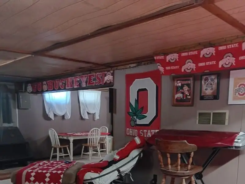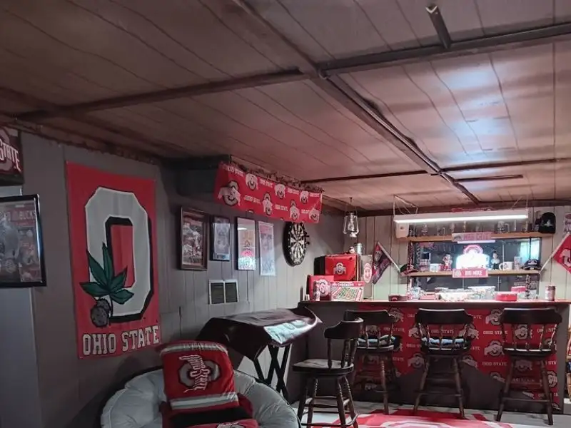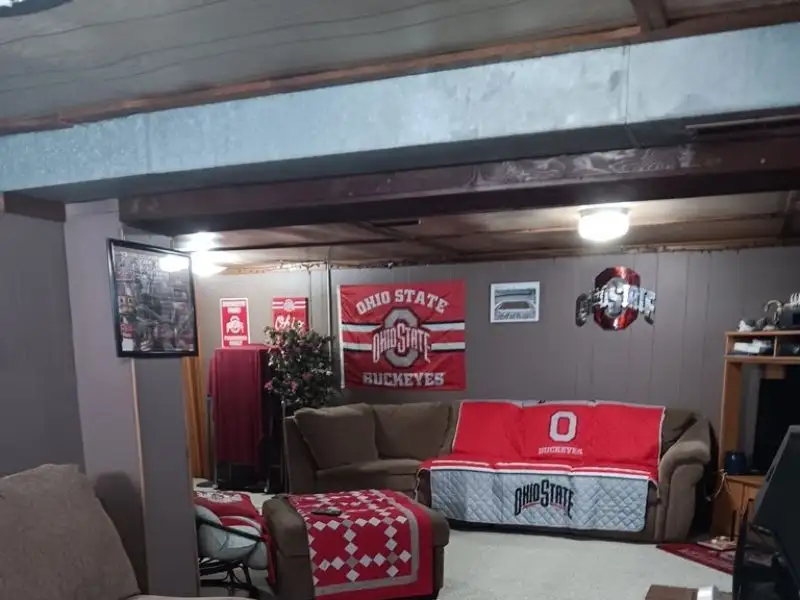 - Partially finished basement with bar