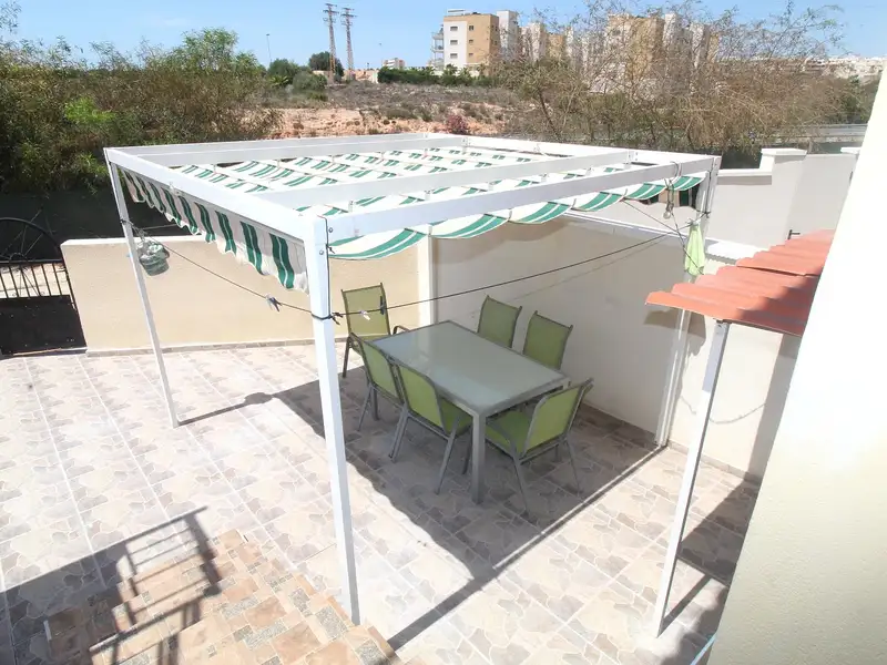 Mediterranean-style duplex apartment is situated in La Zenia a popular coastal resort on the Orihuela Costa in the Alicante province of Spain's Costa Blanca region. Known for its beautiful beaches, vibrant community, and excellent amenities, La Zenia attracts both tourists and expatriates. La Zenia boasts two main beaches: La Zenia Beach and Cala Capitan Beach. Both are renowned for their clean, golden sands and clear, turquoise waters. These well-maintained beaches offer various amenities such as sunbeds, umbrellas, and beach bars (chiringuitos). Water sports are also popular, including jet skiing, snorkeling, and paddle boarding. La Zenia enjoys a Mediterranean climate with hot summers, mild winters, and over 300 days of sunshine yearly. This pleasant weather makes it a year-round destination. One of the highlights of La Zenia is the Zenia Boulevard Shopping Center, the largest shopping mall in the province. It features a wide range of stores, from international brands to local boutiques, as well as a variety of restaurants and entertainment options. The local dining scene is diverse, with numerous restaurants offering Spanish cuisine, fresh seafood, and international dishes. Tapas bars, pizzerias, and fine dining establishments are all available. Apart from beach activities, La Zenia offers golf enthusiasts access to several renowned golf courses in the nearby area, including Villamartin Golf Course and Las Ramblas Golf Club. There are also numerous parks, walking trails, and cycling routes for outdoor enthusiasts. In summary, La Zenia is a vibrant and appealing destination with its beautiful beaches, excellent shopping and dining options, diverse real estate, and a welcoming community. It combines the charm of a coastal resort with the conveniences of modern living, making it a desirable place to visit or live.