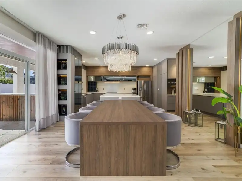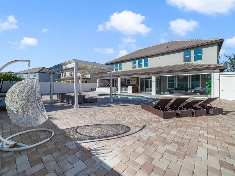 Carefully curated luxury in the sought-after Parkside community! Centrally located for easy access to the Dr Phillips Marketplace, Restaurant Row, top-rated schools and major roadways, this spacious home delivers formal, family and flex spaces, a modern masterpiece in the GOURMET CHEF’S KITCHEN, gorgeous backyard complete with a HEATED POOL and SUMMER KITCHEN, hidden features, tons of storage, and EVERY CUSTOM UPGRADE IMAGINABLE! The impressive TWO-STORY FOYER sets the tone for this light and bright OPEN CONCEPT with site lines straight through to a WALL OF WINDOWS letting the custom accent walls and chic light fixtures shine. The elegant formal dining room allows you to entertain family and friends with ease and the formal living room is versatile in that it could be closed in and used as a 5TH BEDROOM if needed. There is a half bath convenient for guests on the way into the open kitchen and generous family room, both must see spaces thoughtfully designed from floor to ceiling with an ELECTRIC FIREPLACE that adds an unmistakable ambiance to the sophisticated yet comfortable space. Take some time to explore the exceptional kitchen where sleek modern cabinetry is paired with stone counters, upgraded stainless steel appliances, endless storage and some fun ‘hidden’ features. Sliding glass doors open up to an entertainer’s dream oasis, a lanai that runs the entire length of the home with an GLASS ENCLOSED PATIO on one side with a mini-split A/C for maximum comfort and a FULL SUMMER KITCHEN on the other all overlooking the heated pool, pergola, and extensive paver deck, FULLY FENCED for added privacy. The concrete TILE ROOF provides peace of mind and the 3-CAR GARAGE will blow you away with how it has been transformed. As you head upstairs to tour the bedrooms take note of the LUXURY VINYL PLANK WOOD FLOORS that run through the entirety of the home, adding character and warmth to the modern style. At the top of the stairs additional flexible living space awaits in the BONUS/LOFT (could also be an easy conversion to a 5th bedroom), a bright and comfortable place to gather the family with custom accent walls and a built-in nook for your TV. The cherry on top of this designer home is the massive PRIMARY SUITE delivering a tranquil retreat for the new owner with another custom accent wall, its own electric fireplace, large SITTING AREA, well appointed private en-suite bath and huge WALK-IN CLOSET with CUSTOM BUILT-IN’S to organize until your hearts content. This immaculately maintained community enjoys an array of AMENITIES, from the clubhouse, community pool, playground or tennis courts - there is something for everyone. Call today to schedule a tour and fall head over heels in love with this stunning home on Chilton Drive!