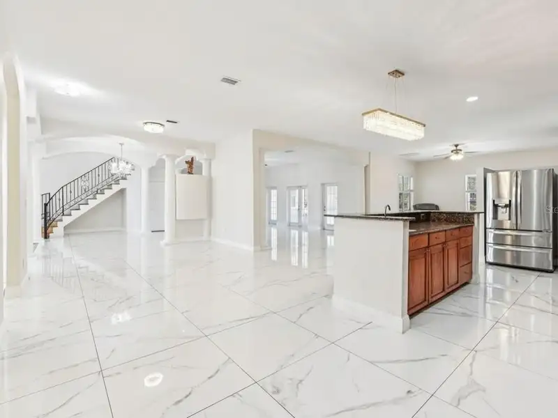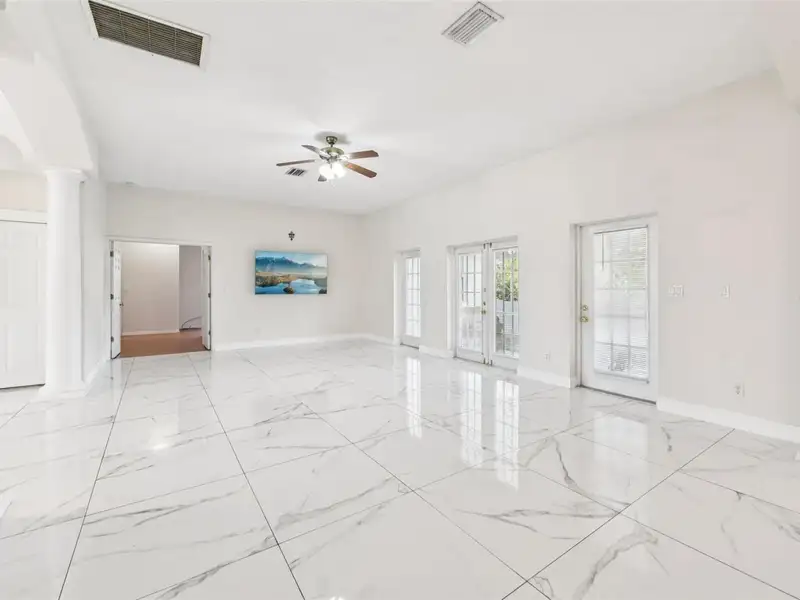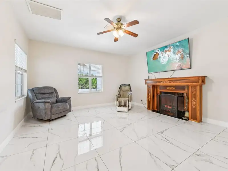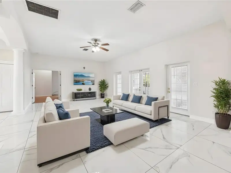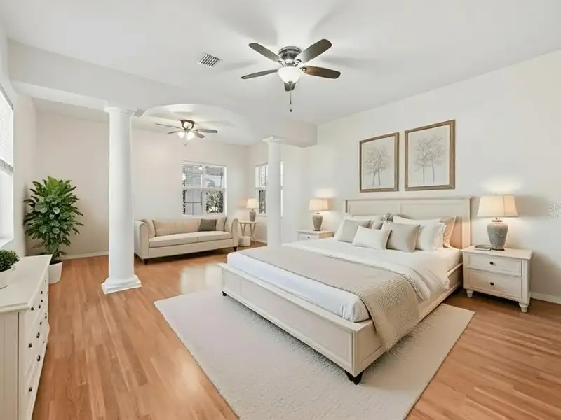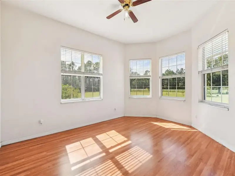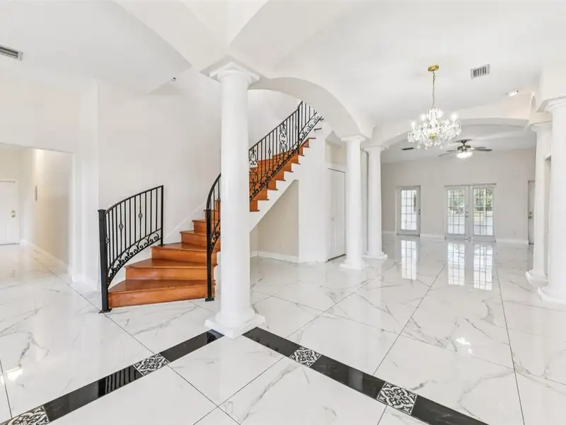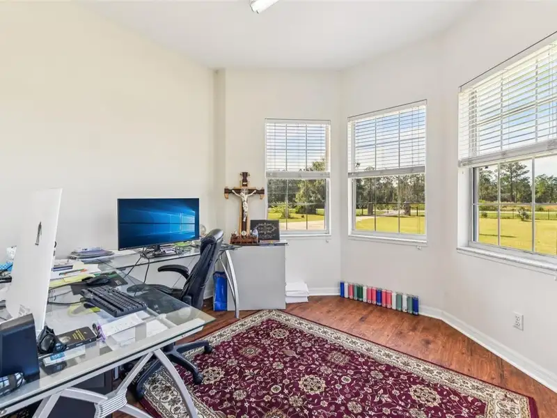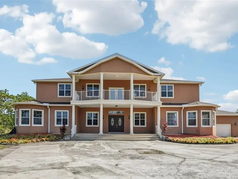 One or more photo(s) has been virtually staged. Dreams do come true! Welcome to your private slice of paradise in Wedgefield! This impressive custom-built estate offers over 5,000 square feet of living space with 6 bedrooms and 6 bathrooms, beautifully set on 4.77 acres and zoned A-2, so you can bring your horses, goats, chickens and more. Built in 2004 and well-maintained, this property blends peaceful country living with modern convenience and community amenities, including an 18-hole golf course, playgrounds, sports courts and nearby Hal Scott Preserve for hiking, biking and nature lovers. A 5-foot wrought iron fence spans the 360-foot front yard with a 20-foot wrought iron electric gate and pedestrian gates on either side, while the rest of the property is enclosed with 5-foot wire fencing- ideal for animals and added privacy. The enormous front and back yards are perfect for play, gardening, entertaining and enjoying the quiet setting, and the 288 sq. ft. Tuff Shed provides excellent additional storage. Step up to the Shark Coating front porch and through the double-door entry into a grand foyer that sets the tone for the rest of the home. Gorgeous inlaid porcelain tile flows throughout the first-floor living areas, and arched vaulted ceilings add volume and elegance. To one side of the foyer is a welcoming sitting room, and to the other, a formal dining area ready for large gatherings. The spacious, open kitchen anchors the main level with granite countertops, a granite breakfast bar, recessed lighting, abundant cabinetry and a huge walk-in pantry. The open concept layout connects all the spaces, giving you endless options for arranging living, dining and entertaining spaces to suit your lifestyle. On one side of the main floor you will find a guest bedroom with its own private bathroom featuring a Jacuzzi tub with shower - great for visiting guests or multi-generational living. The opposite side of the home hosts two individual office spaces, each with its own exterior entrance and one with a half bath, creating an ideal setup for remote work, home-based business, studio or hobby spaces. The main floor primary suite is a true retreat, complete with a tranquil sitting area and separate dual walk-in closets. The expansive primary bath offers a glass-enclosed shower, luxurious Jacuzzi garden tub and dual vanities, giving you a spa-like experience at home. French doors from the main living area open out to an approximately 1,100 sq. ft. screened lanai with porcelain tile flooring and a peaceful forest view. This impressive outdoor living area includes counter space with cabinets, a sink and a convenient half bath - perfect for hosting parties, enjoying quiet mornings with coffee, or relaxing after a long day without ever leaving your property. Up the grand curved staircase, a loft area opens to a balcony overlooking the front yard, giving you yet another beautiful space to relax or gather. Four additional bedrooms extend off the loft, two on each side, and each pair of bedrooms is served by a bathroom with a Jacuzzi tub and shower. One of the upstairs bedrooms features its own private sunroom, adding even more flexible living space for a reading nook, playroom, workout area or creative studio. This home is truly impressive - offering space, serenity and versatility inside and out! Come experience the peaceful setting and spectacular location for yourself. Call today to schedule your private showing an ASK US ABOUT THE ASSUMABLE VA LOAN or LENDER PROVIDED RATE BUY-DOWN CREDIT!