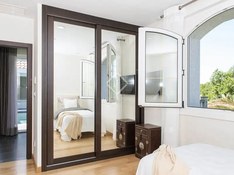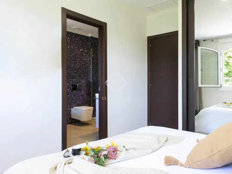 Towards the right-wing, we find the sleeping area, with three ensuite bedrooms and another bedroom. All feature direct access through sliding glass doors to the swimming pool.