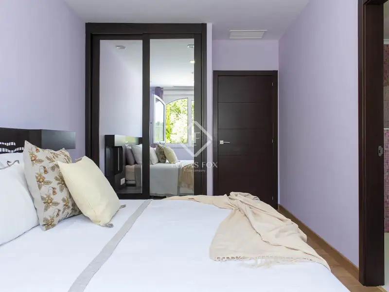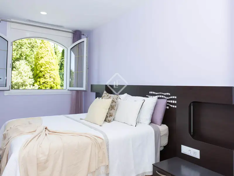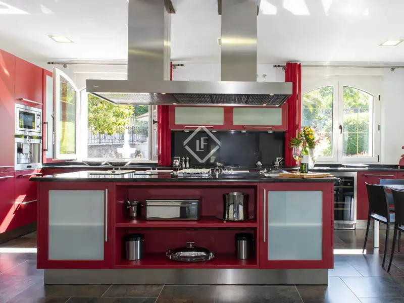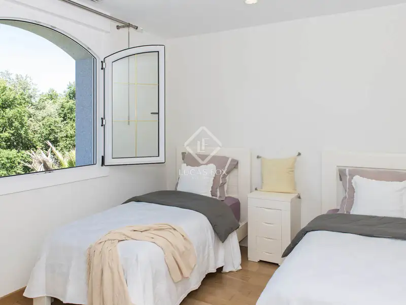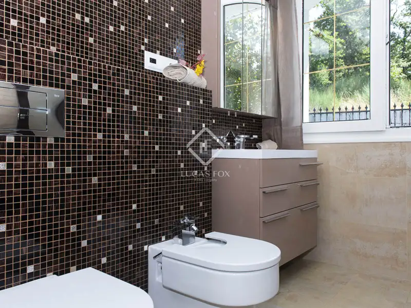 The property consists of two floors, on the main floor we find the entrance hall which leads to the living area, to the left-wing we find the fully equipped eat-in kitchen, finished with good quality carpentry and well-maintained appliances, features plenty of natural light and views of the garden and direct access to it. In the same area, we access the dining area and living room, separated by a double-sided fireplace and featuring a unique design.