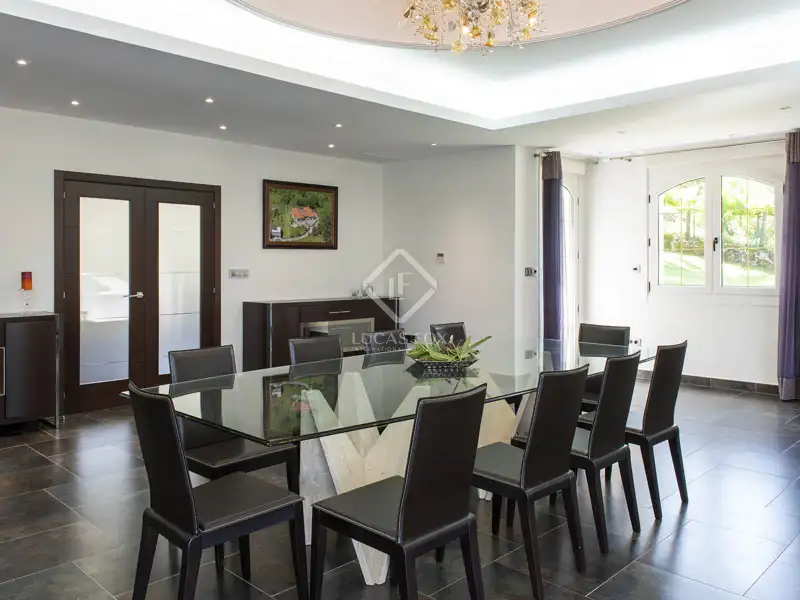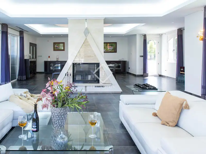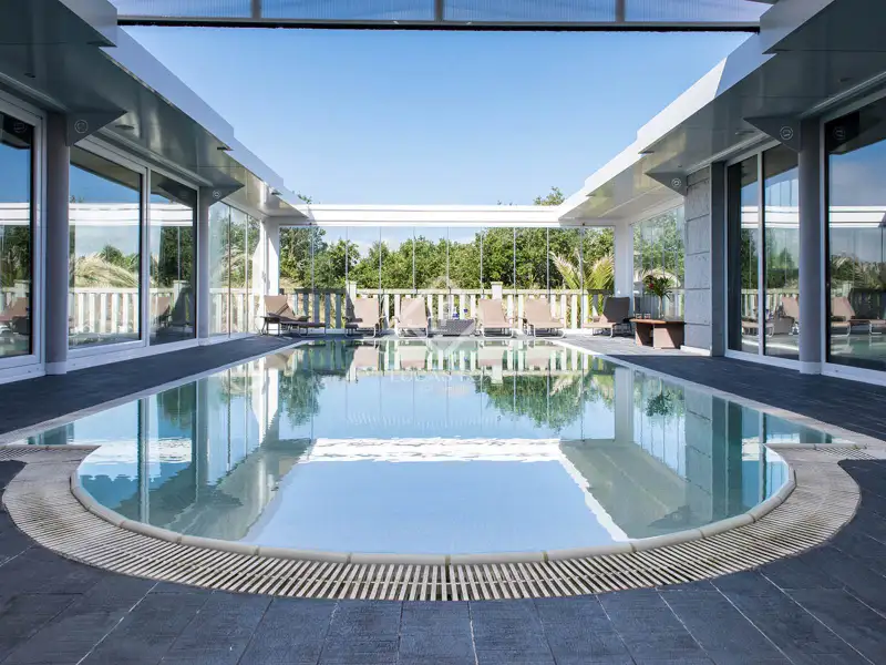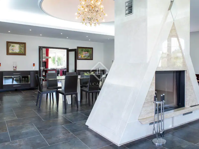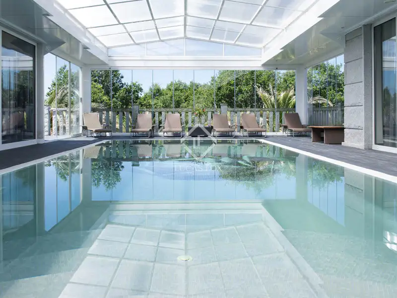From the living room, large sliding glass doors give direct access to a beautiful indoor swimming pool. The swimming pool is equipped with a motorized sunroof for the summer months.