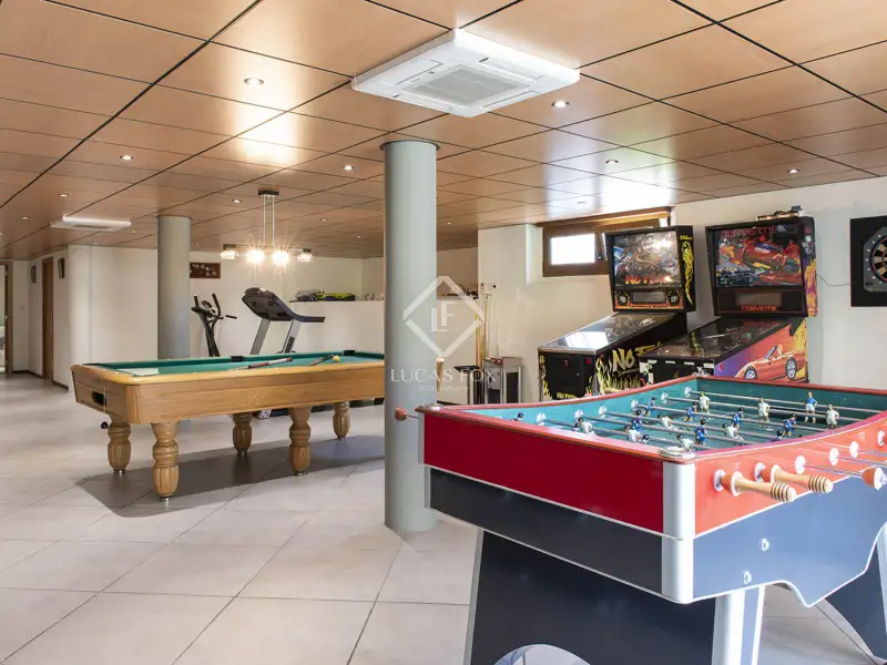 The floor beneath there is a large, well-finished parking area, a recreation area with a games room, a laundry room as well as a dressing room and a bathroom, and also the machine room. In the machine room you will find all the machinery for the solar panels and water reserves.