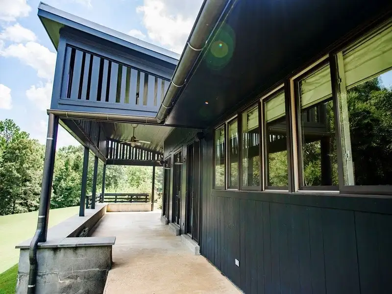 - Wrap-around porch with large windows