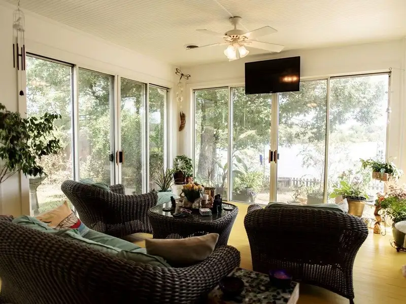 - Sunroom with scenic lake views