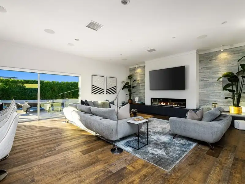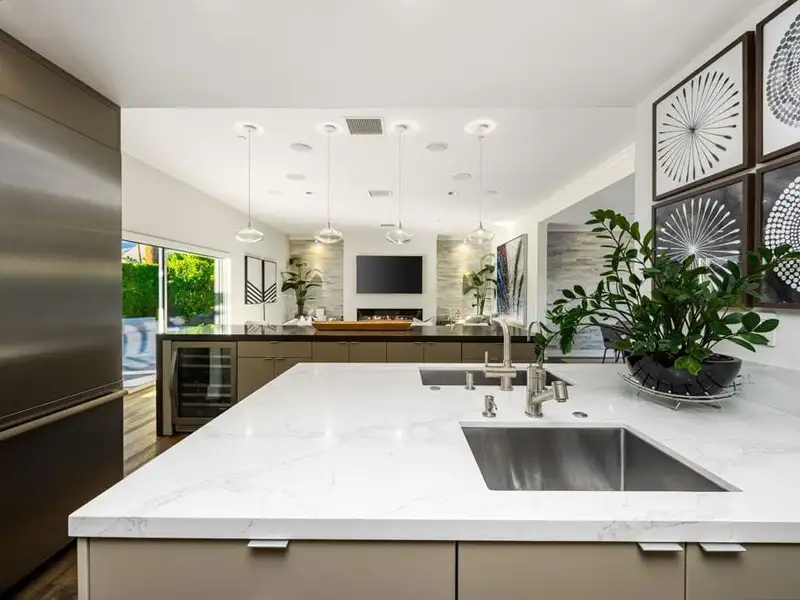 - Outdoor kitchen with built-in BBQ and refrigerator