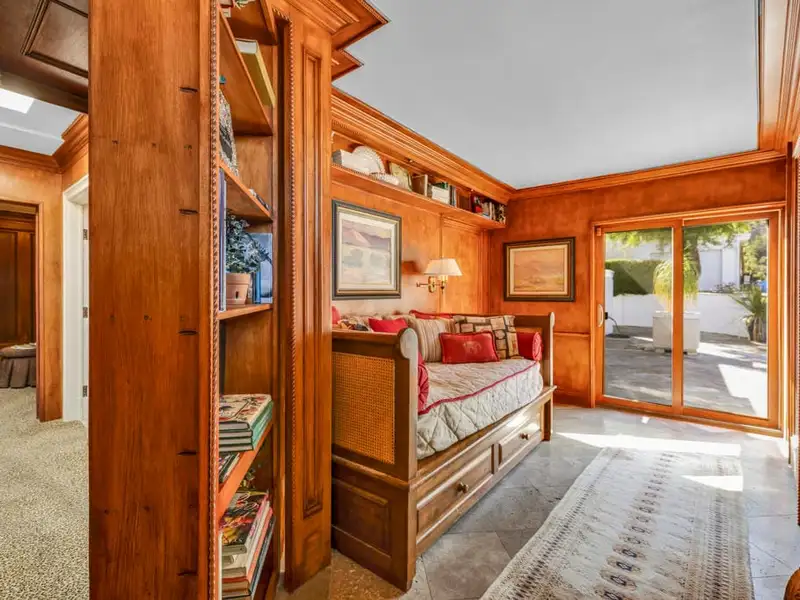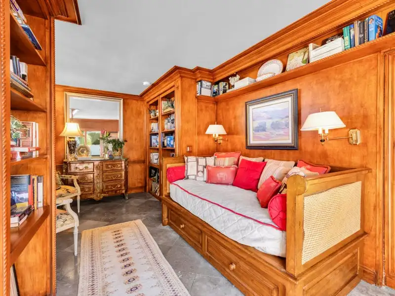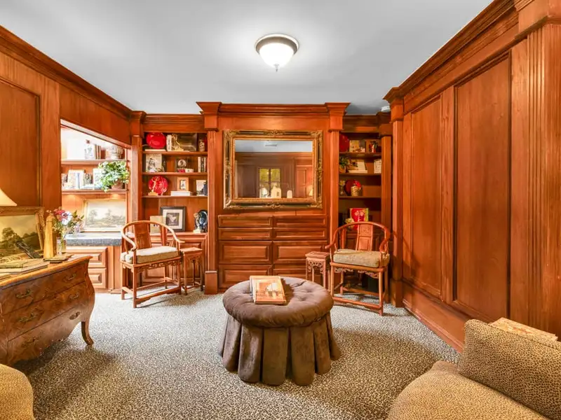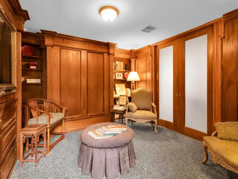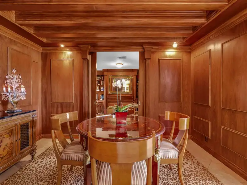 - Custom mahogany and walnut paneling