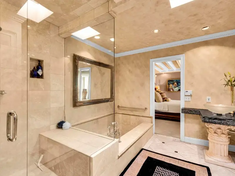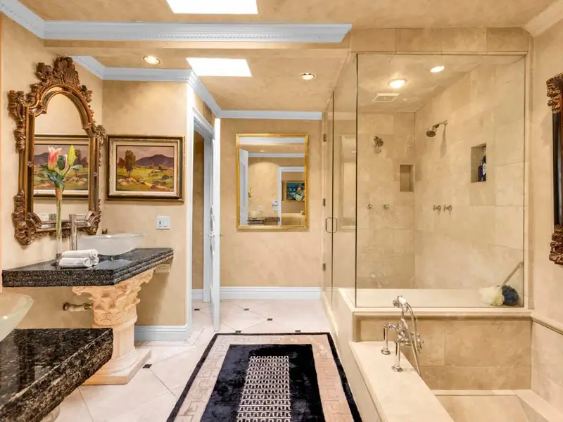 - Hand-cut French limestone floors