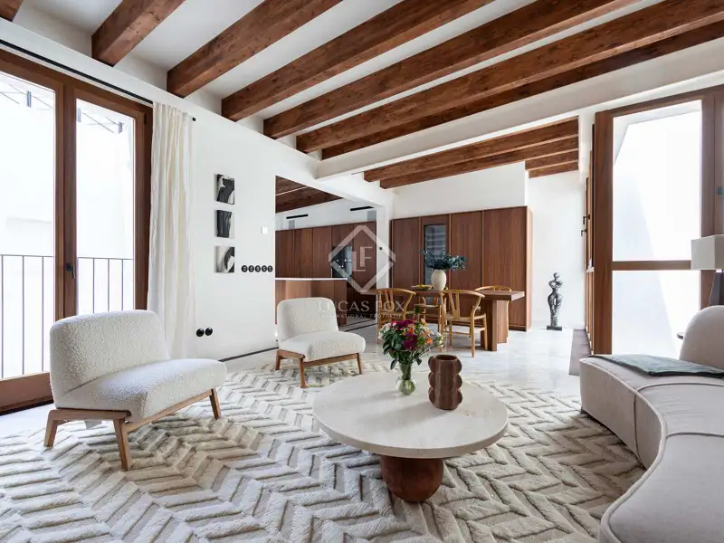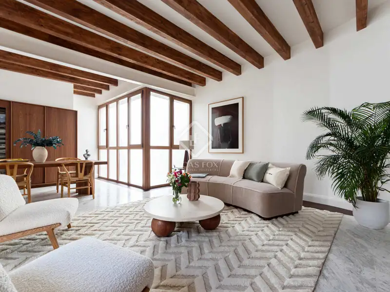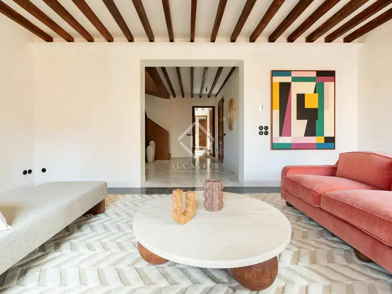 - Spacious living room with antique tiles and balconies