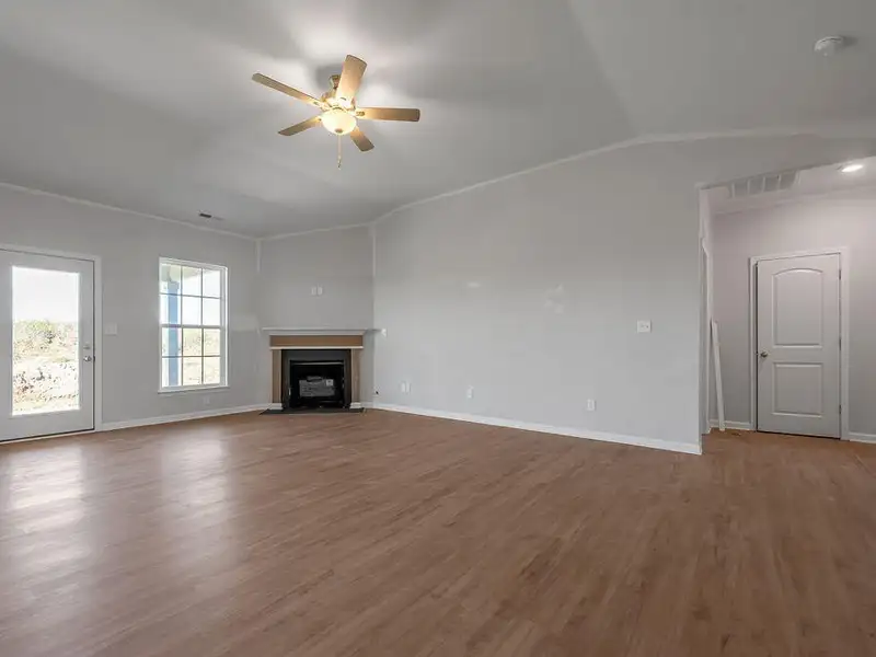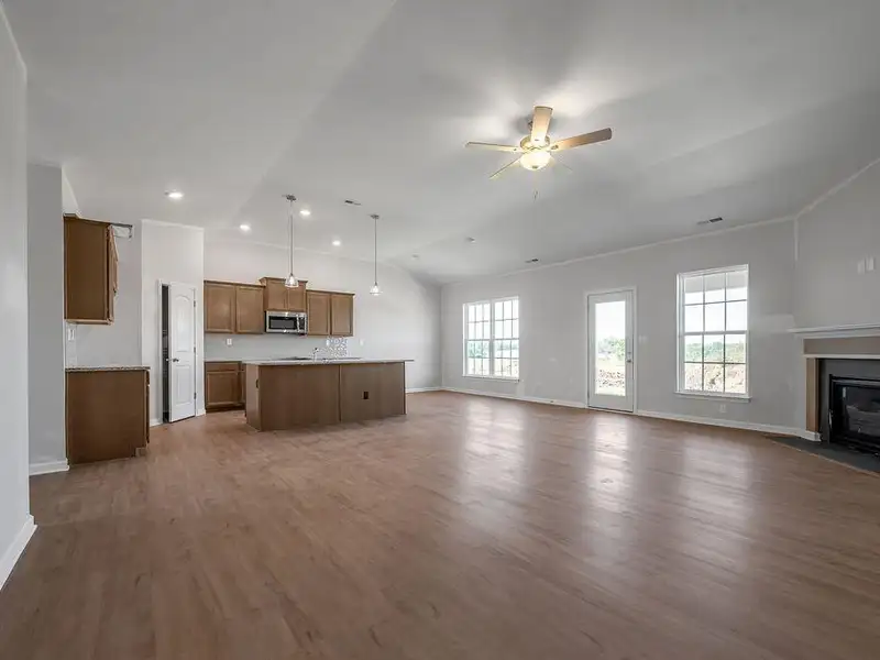 - Vaulted ceilings with corner fireplace