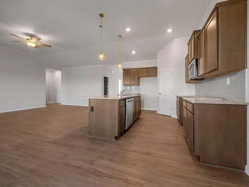- Island kitchen with granite countertops
