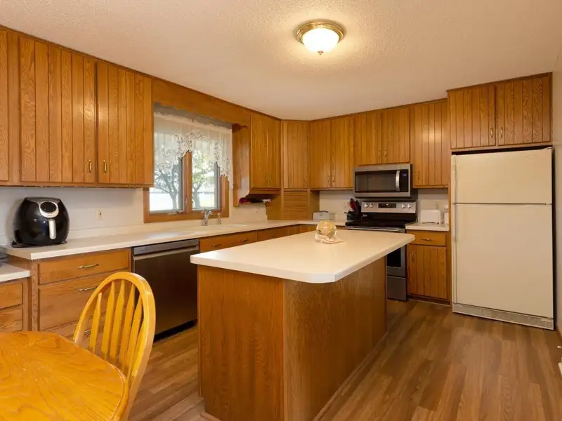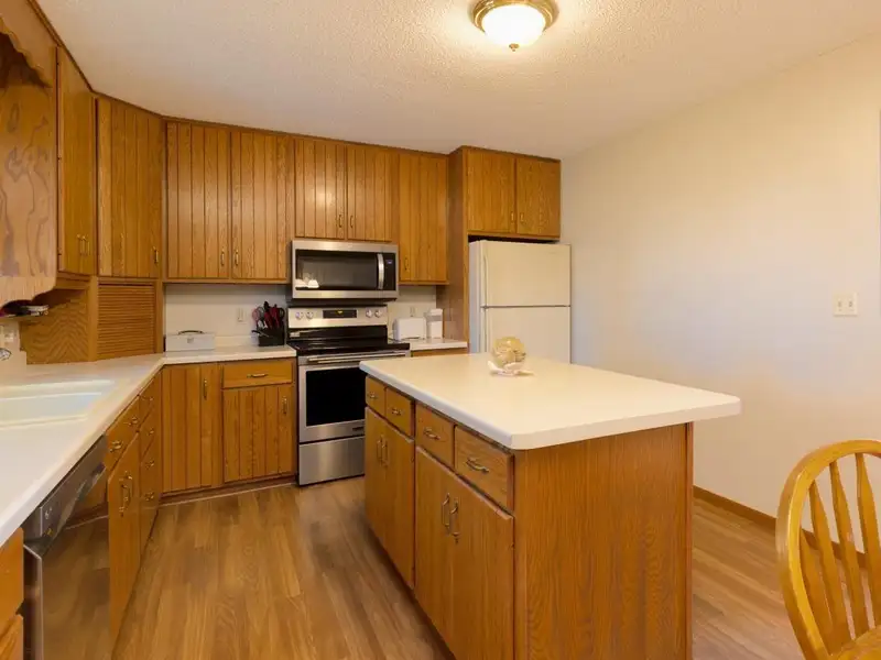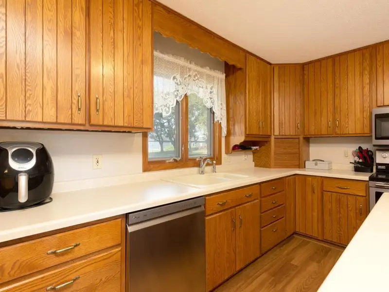 - Kitchen with many cabinets and ample counterspace