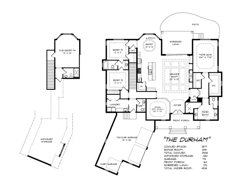 - Two-car garage plus third golf cart bay