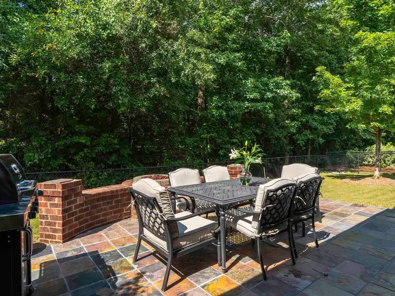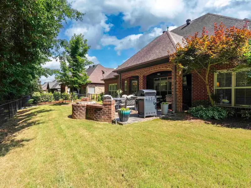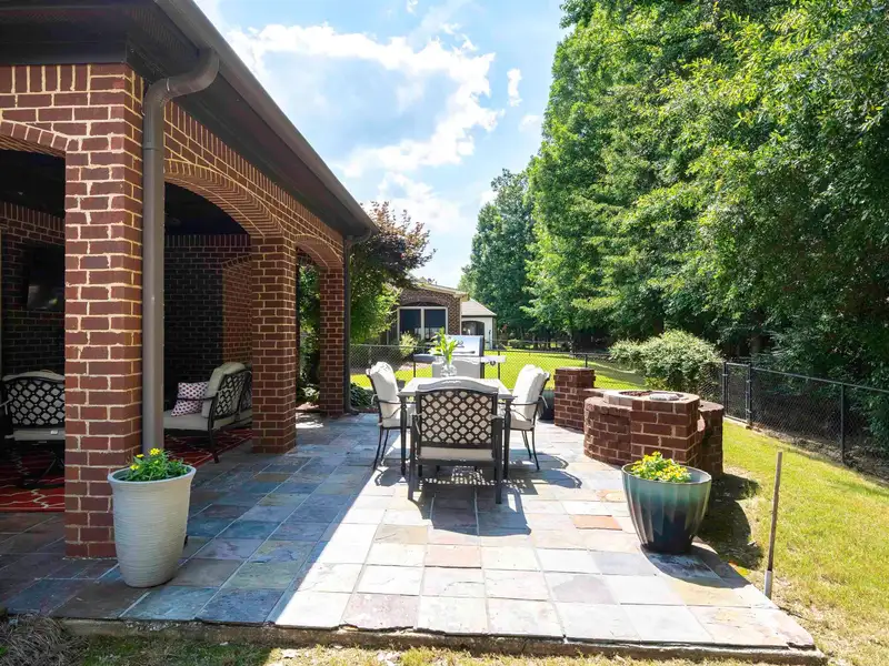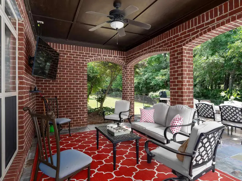 - Covered patio with fire pit and TV