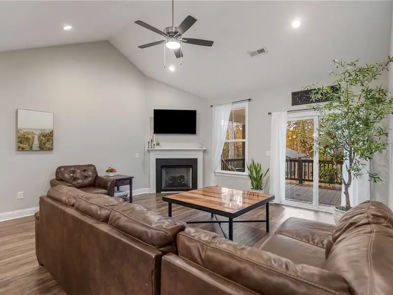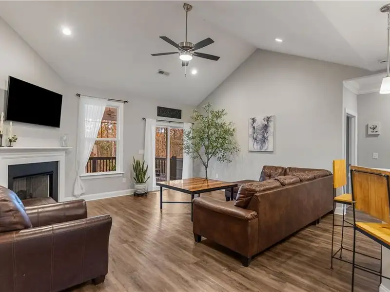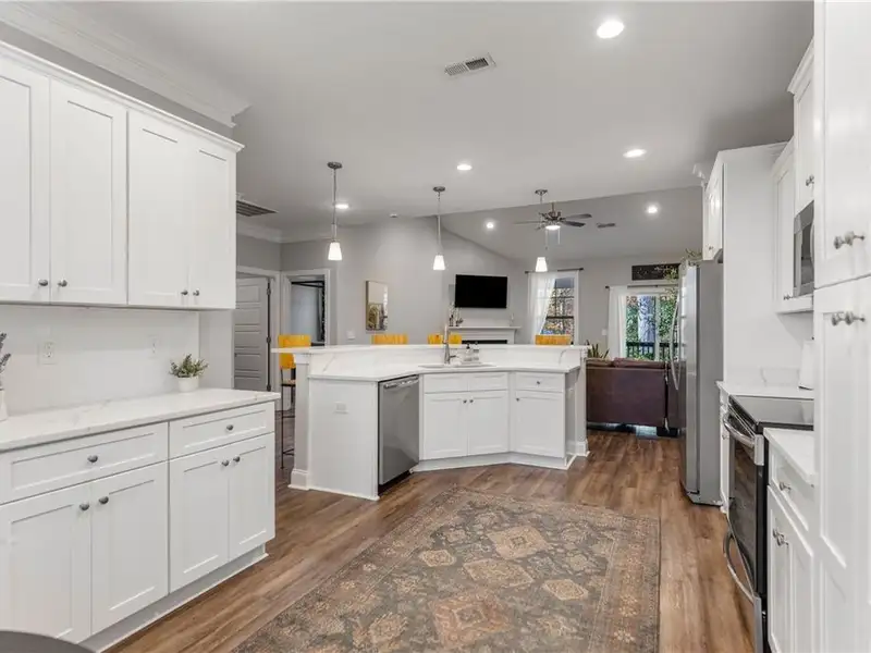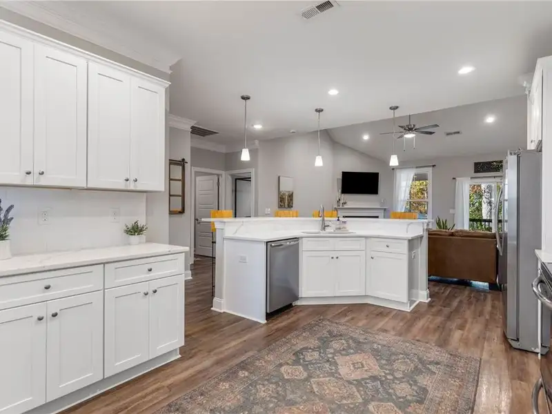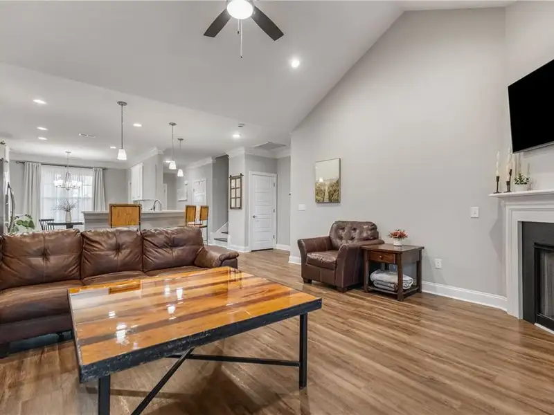 - Open floor plan with vinyl flooring