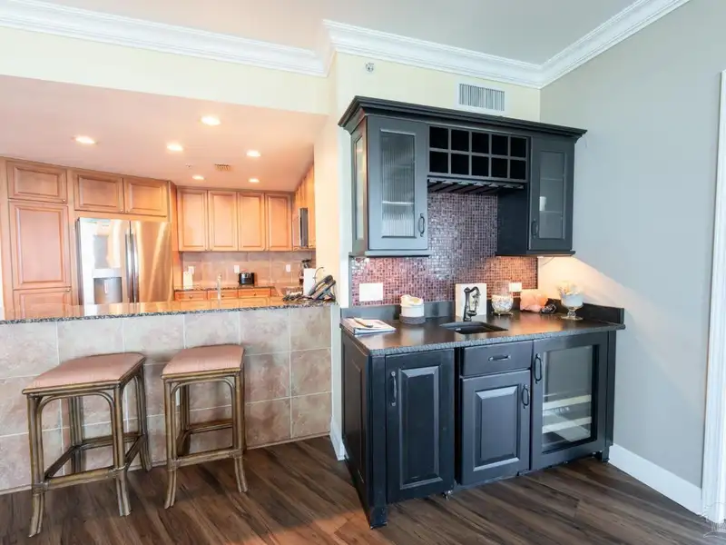 - Custom wet bar with wine cooler and ice machine