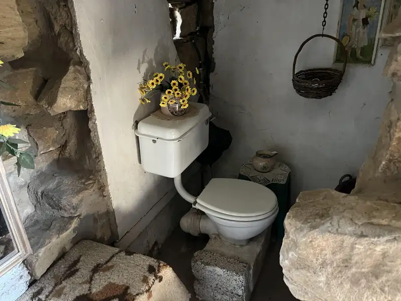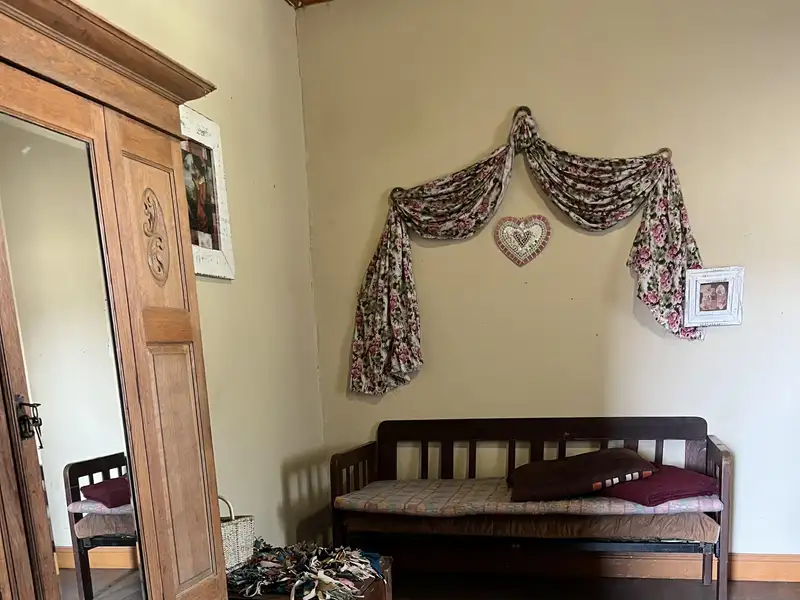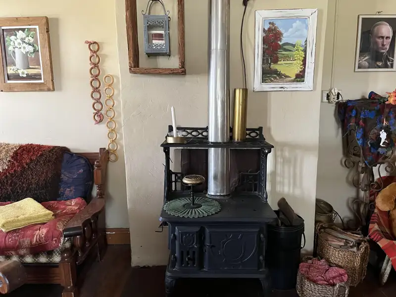 - Cozy living room with coal stove