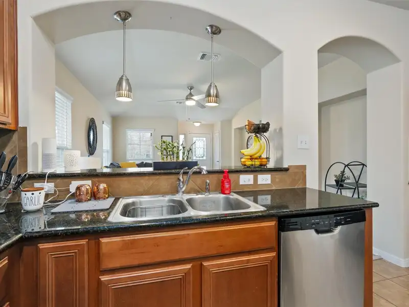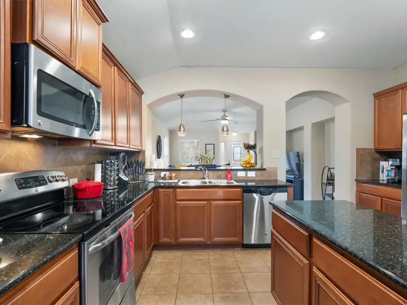 - Granite counters with kitchen island